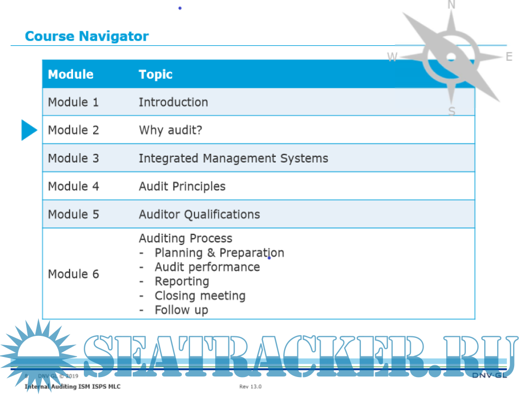 The course focuses on:ISM/ISPS/MLC audit and verification requirements