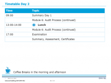 The course focuses on: ISM/ISPS/MLC audit and verification requirements Common features and differences Techniques that contribute to the success of communication processes within audits Planning, preparation, performance, recording, reporting and follow-up of audits Principles and best practices of harmonized audits and verifications Handling of non-conformities including root cause analysis and corrective actions