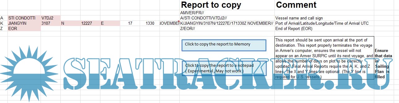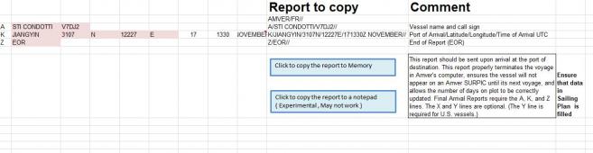 Description: This is a program I made to make AMVER reporting easier. Just export the route from ECDIS into csv fromat , paste it in excel , add a few necessary details and press the button. Thats all you have to do. I made it because I have seen second mates spending a lot of time for making AMVER report.