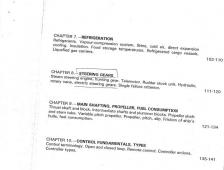Then, there are three chapters devoted to the pumping arrangements and auxiliaries, refrigeration machinery and ship steering gear together with all parts. The rest of the document covers the shafting arrangements and propulsion, consumption of the fuel oil, fundamentals of control systems, instrumentation and other important aspects.