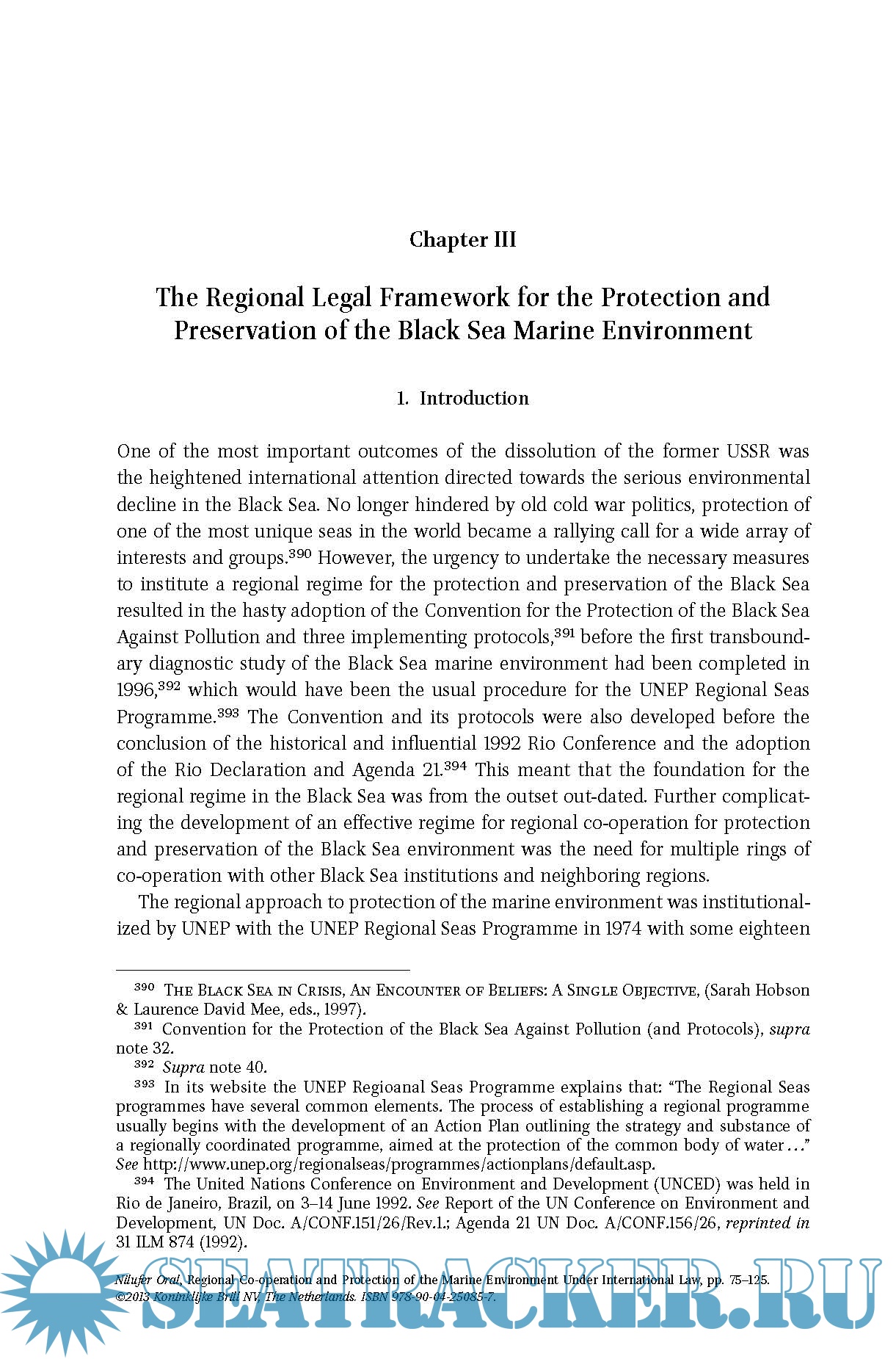Year: 2013 Language: english Author: Martinus Nijhoff Genre: Handbook Publisher: Martinus Nijhoff ISBN: 9789004250857; 9789004250864 Format: PDF Quality: eBook Pages count: 322 Description: In Regional Co-operation and Protection of the Marine Environment under International Law: The Black Sea, Nilufer Oral examines the regional co-operation mechanism for protection and preservation of the Black Sea marine environment within the framework of international law, and subsequently identifies the necessary components for a robust regional regime based on best legal practices.