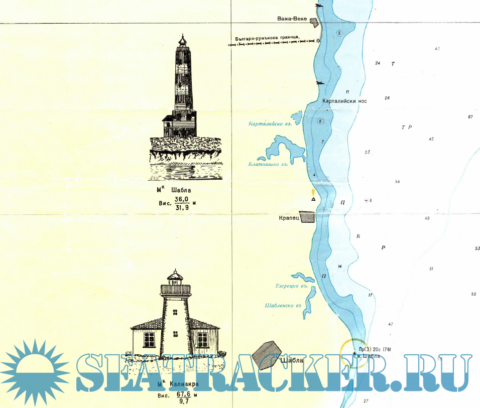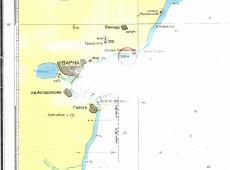 Description: This is a chart, part of the Bulgarian coast, used in Bulgarian marine academies.