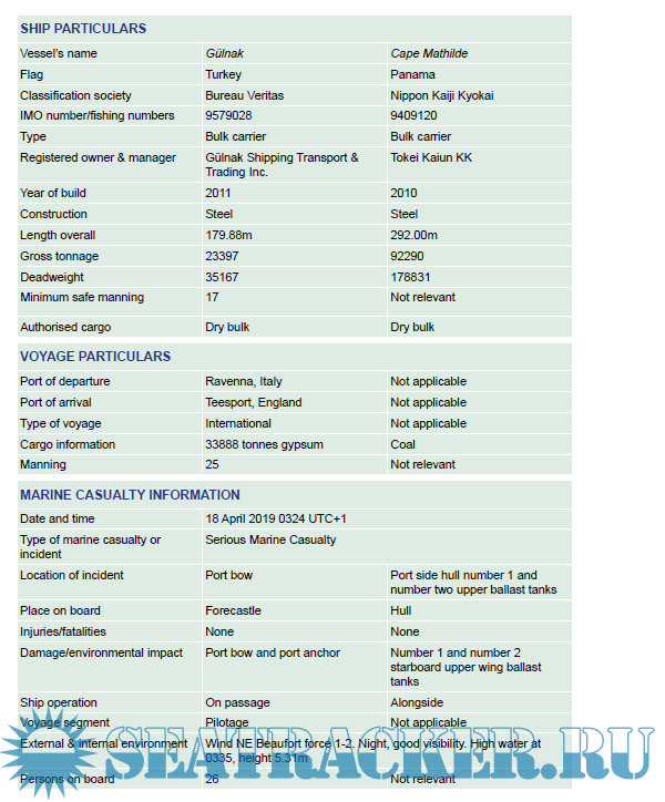 Marine Accident Report(MAIB) - Gulnak and Cape Mathilde