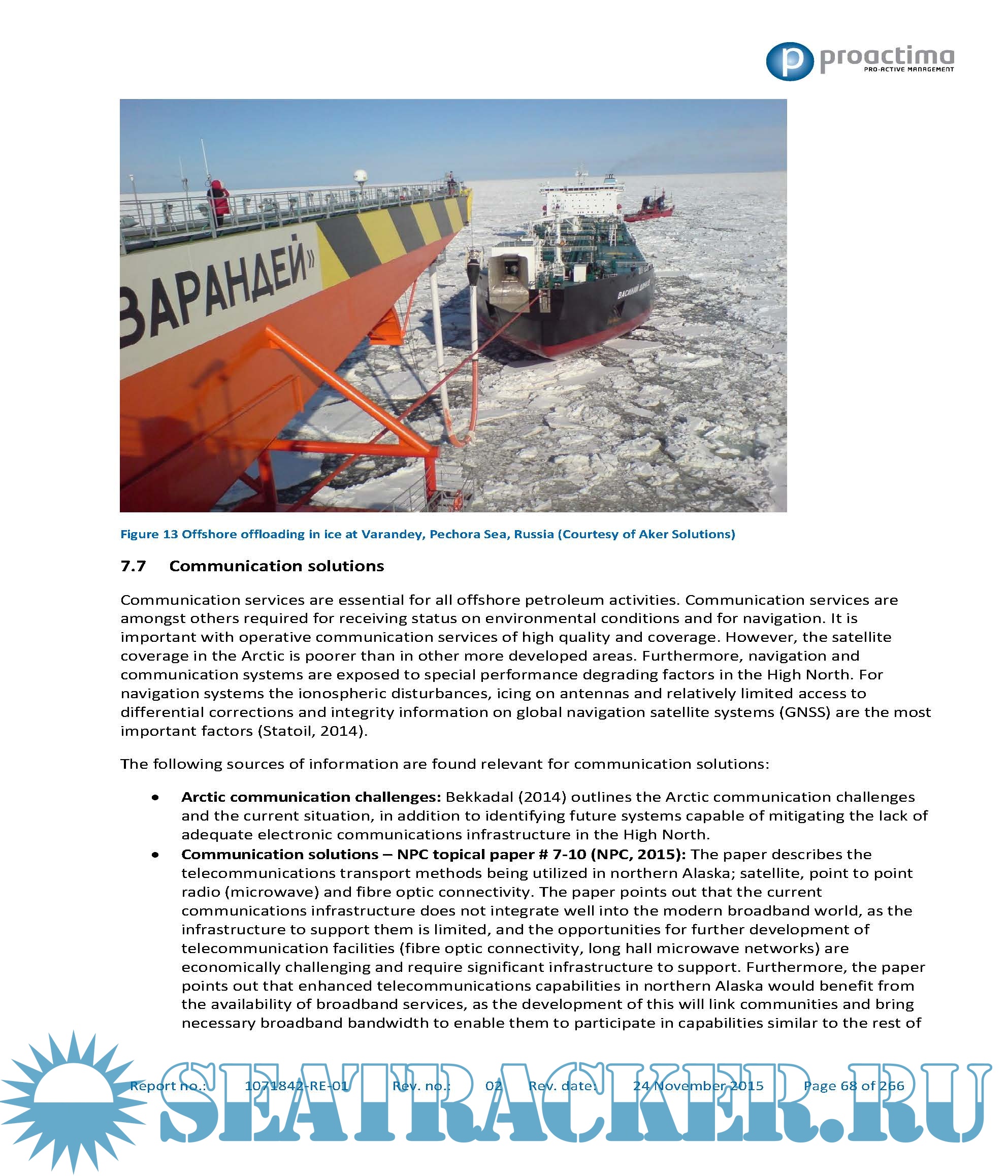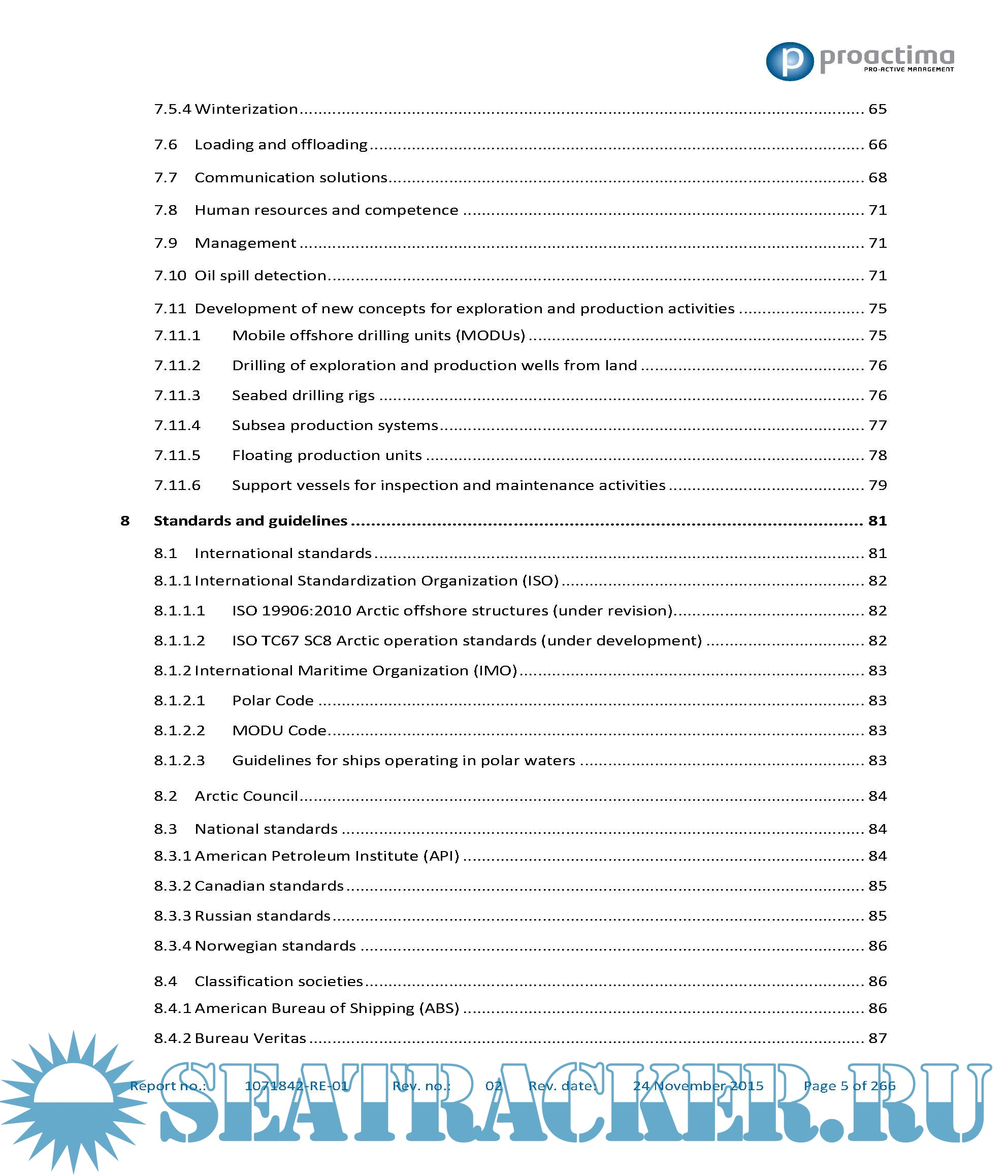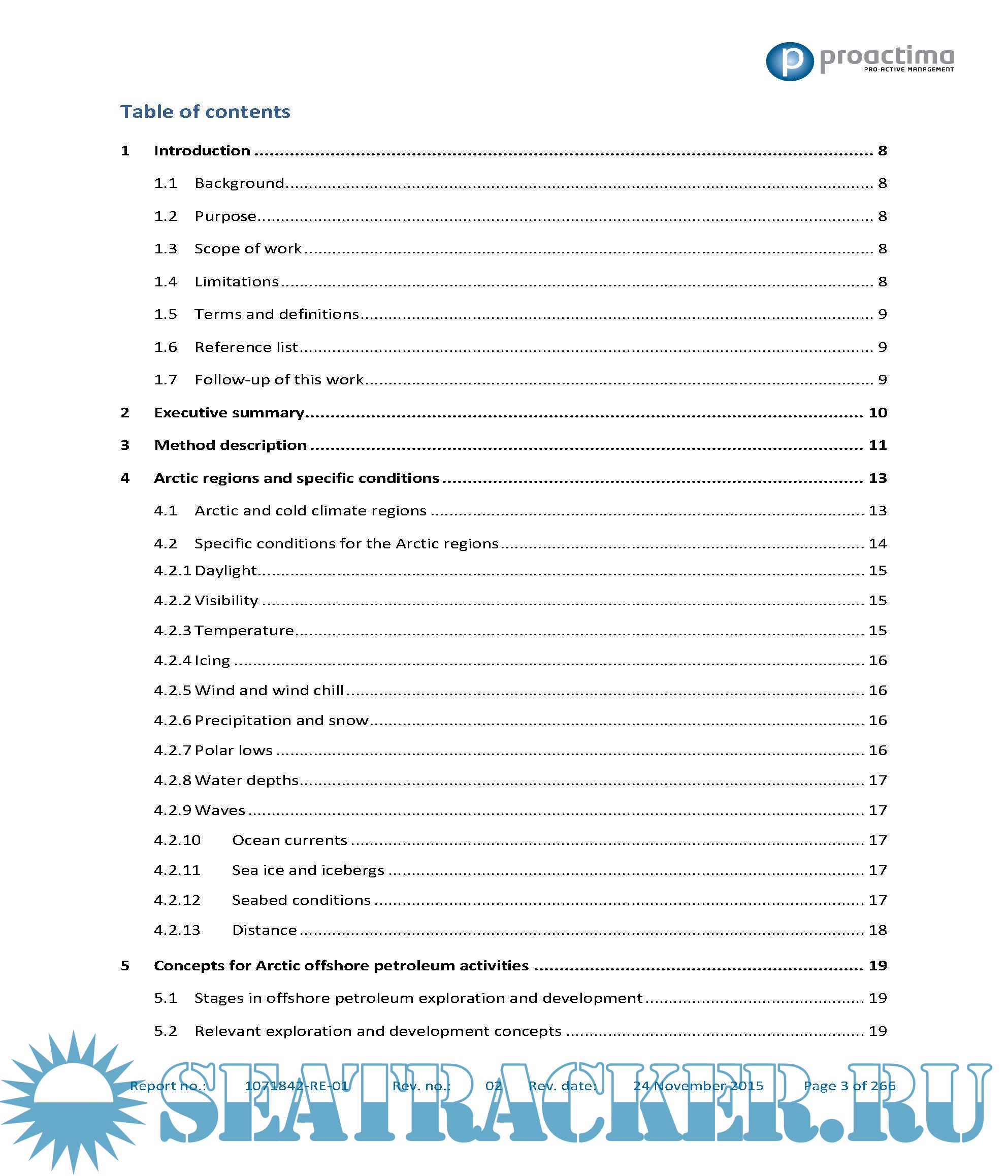 This report was prepared by Proactima far the Norwegian Petroleum Safety Authority acting on behalf of the Norwegian Ministry of Foreign Affairs. The development of the report has been financed by the Norwegian Ministry of Foreign Affairs. The final report was delivered to the Ministry of Foreign Affairs for further processing with regard to the Arctic Council.