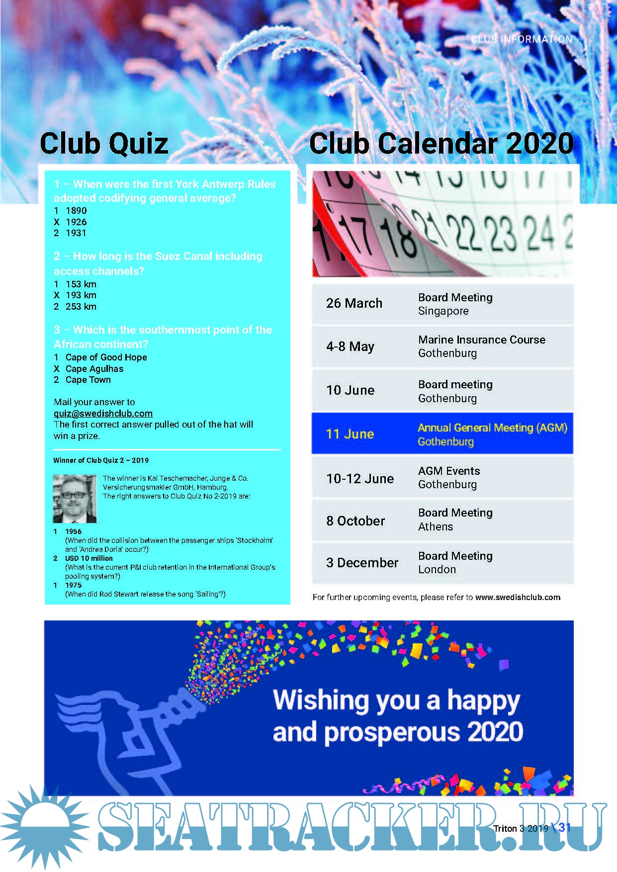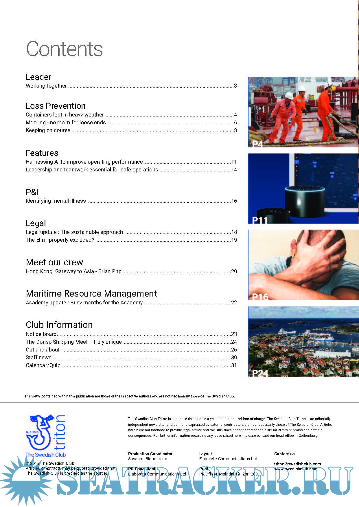 Description: The Swedish Club Triton is published three times a year and distributed free of charge. The Swedish Club Triton is an editorially independent newsletter and opinions expressed by external contributors are not necessarily those of The Swedish Club. Articles herein are not intended to provide legal advice and the Club does not accept responsibility for errors or omissions or their consequences.