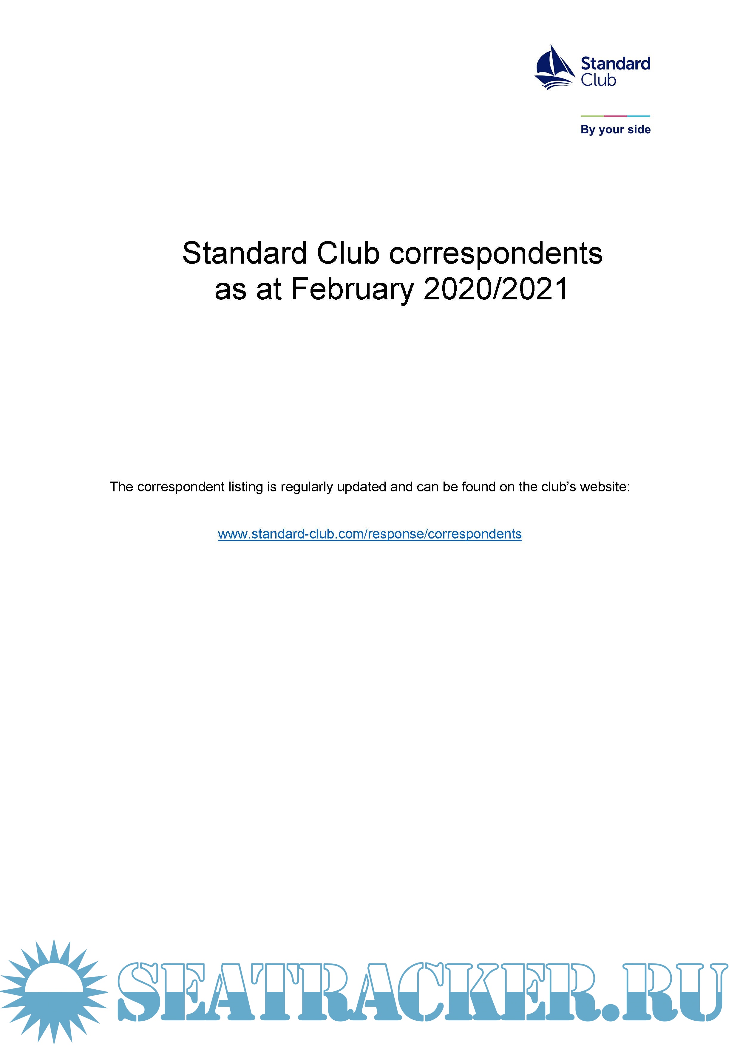 Standard P & I Club Rule Books, 2020/21 and Correspondents