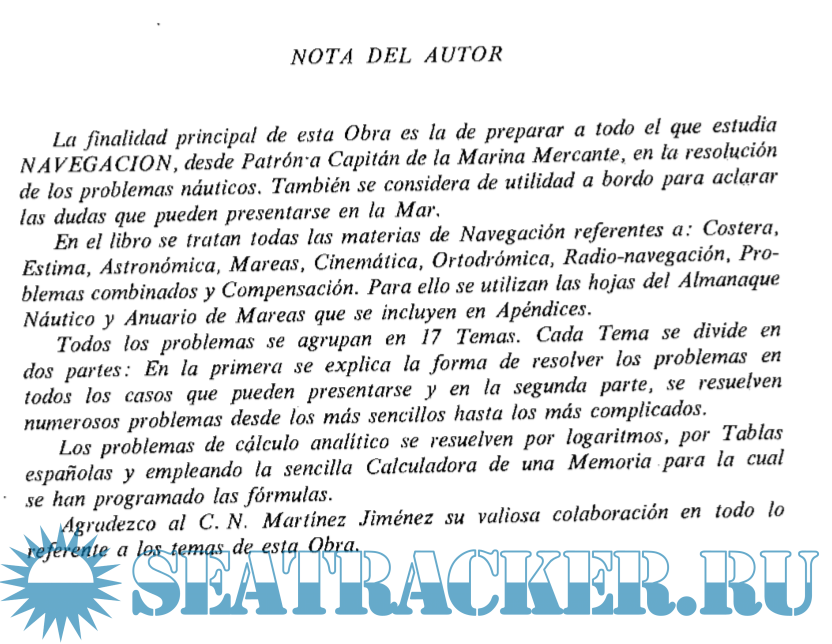 The main purpose of this Work is to prepare everyone who studies Navigation, from Skipper to Captain of the Navy Merchant , in the resolution of nautical problems. It is also considered useful on board to clarify the doubts that may arise at sea.