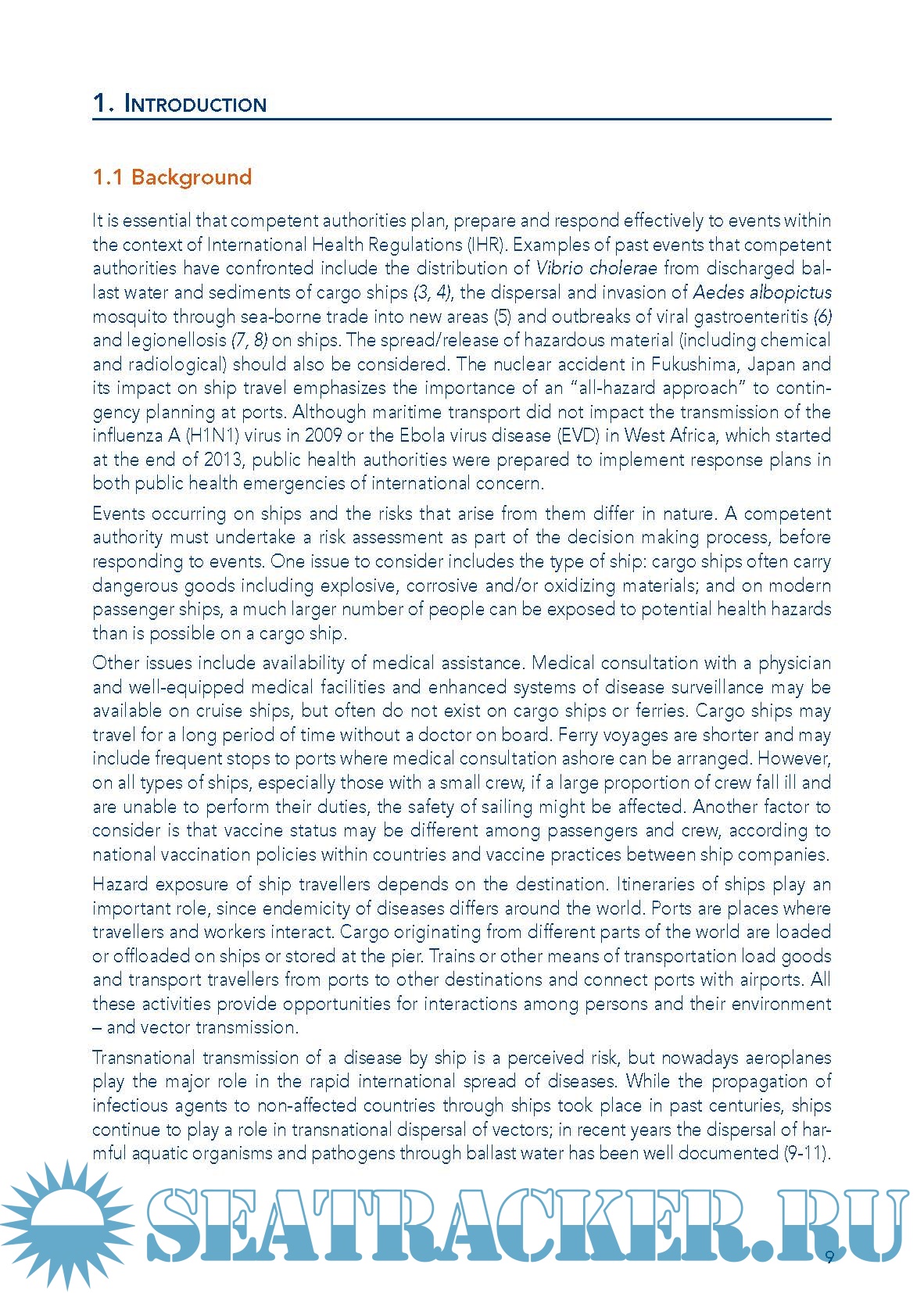 Description: This document aims to provide technical advice to competent authorities at the port level for management of public health events on board ships; it complements other WHO publications addressing risk assessment at the national level, contingency planning at ports, airports and ground crossings, and establishment of capacities and application of emergency plans at the port level.