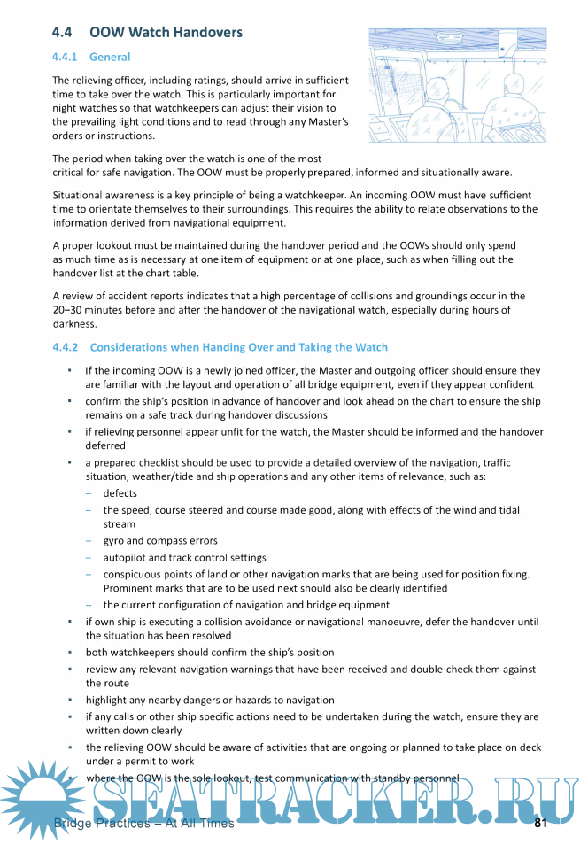 Description: This publication provides guidance on safe bridge watchkeeping and highlights potential issues and pitfalls. It is based on advice and guidance from experienced mariners, reinforced by best practice.