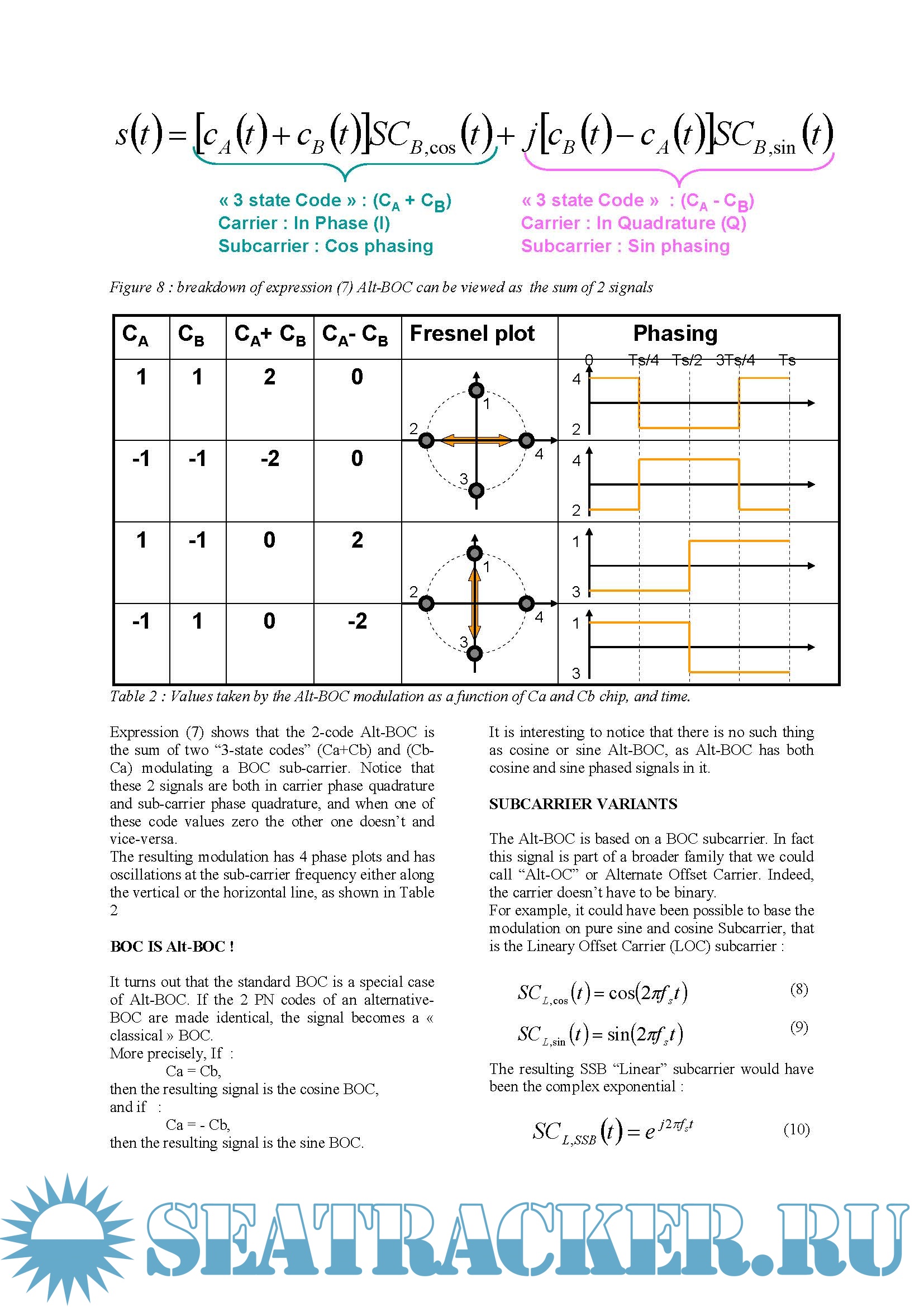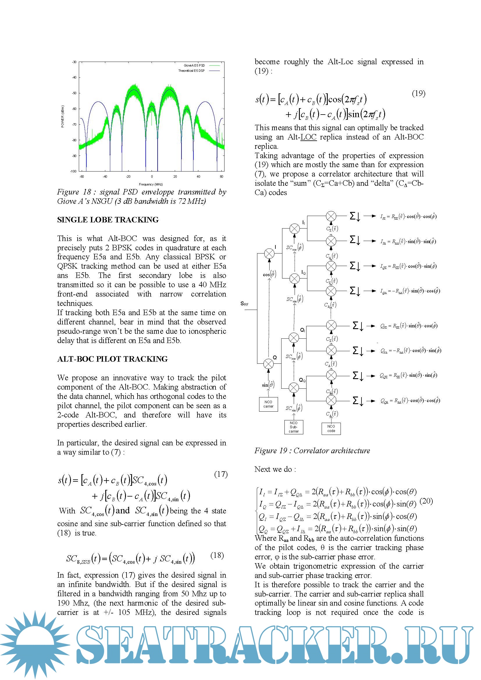 Year: 2008 Language: english Author: Laurent Lestarquit, CNES Genre: Technical book Format: PDF Quality: eBook Pages count: 10 Description: Alt-BOC is a modulation whose understanding require strong efforts. The mathematical formulation and the equivalent look-up table provided in the GALILEO SIS-ICD are not strait-forward. Written by its inventor, the purpose of this paper, is to help navigation engineers in understanding Alt-BOC or we should say, understanding the numerous Alt-BOC variants, explaining how the constant envelope Alt-BOC was invented, and highlighting its properties. An accurate definition was given in : “ An Alternative-BOC signal is a BOC-like signal having different PN codes in the lower and the upper main split lobes. Alternative-BOCs allow one signal service per lobe.”