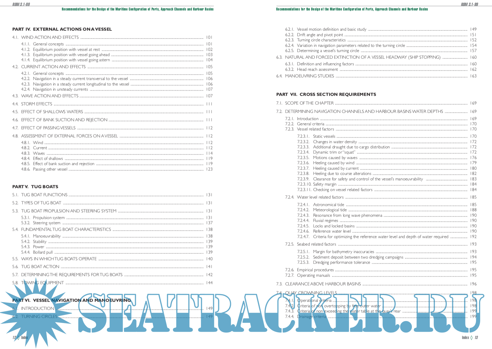 Year: 2007 Language: english Author: Carlos Sanchidrián et alli Genre: Reference book Publisher: Puertos del Estado (Spain) ISBN: 84-88975-39-2 Format: PDF Quality: eBook Pages count: 382 Description: With the publication of the «Recommendations for the Design of the Maritime Configuration of Ports, Approach Channels and Harbour Basins» (ROM 3.1-99), Puertos del Estado is materializing one of the Codes anticipated in 1987 when the ROM (Recommendations for Maritime Works) Programme was started by order of the former Directorate General for Ports and Coasts of the Ministry of Public Works and Urban Development. These new recommendations strengthen the concept of port operability as a basis for laying down design criteria for the maritime configuration of ports, their approach channels and harbour basins.Therefore, ROM 3.1- 99 does not just set mandatory maritime-port safety requirements but also seeks to guarantee minimum vessel navigation and manoeuvrability conditions in port waters and, finally, contribute to optimise the operating system of the different port areas attending to vessel traffic. With this in mind, the main purpose of this ROM 3.1-99 is to design and build the maritime configuration of ports, their approache channels and harbour basins.Whilst not constituting a Regulation for Maritime Operation of these areas, the ROM 3.1-99 may easily be applied to this end, taking into account the fact that the maritime configuration of ports has to guarantee the limit operating conditions to be established for different vessel manoeuvring in port waters. To this end, and within its scope of application, the ROM 3.1-99 echoes the major, methodological renewal effort that Puertos del Estado has addressed for the whole ROM Programme, one of whose supports is precisely to make safety requirements compatible with those of functionality.The design of the cross section and the layout of vessel navigation and manoeuvring areas in ports calls for the external actions envisaged during the service period of these areas to be taken into account as well as the predicted vessel traffic and types.This circumstance provides the content of this ROM 3.1-99 with a functional view more adaptable to the integral planning process of maritime-port construction. These Recommendations reflect this modernizing effort and make use of the whole rich flow of technology currently existing in the field of vessel manoeuvrability and of the interaction of such vessels with their physical environment (wind, waves and current).To this effect, a suitable path is opened for the rational use of probabilistic methods, simulation techniques and scale model testing for full characterization of the most frequent manoeuvring of vessels operating in ports. The use of the most advanced technology in the maritime-port field for designing approach channels and harbour basins allows the user of these Recommendations, whether a planner, designer or builder, to propose a calculation methodology adaptable to the targets and the available resources, without detriment to setting minimum general requirements. In this way, the ROM 3.1-99 is configured as an open instrument which proposes advanced calculation lines coherent with the general provisions of international organizations (IMO, IMMA, etc.) and committed to achieving a high standard of safety and operability in our port waters. Additional info: Spanish version here: