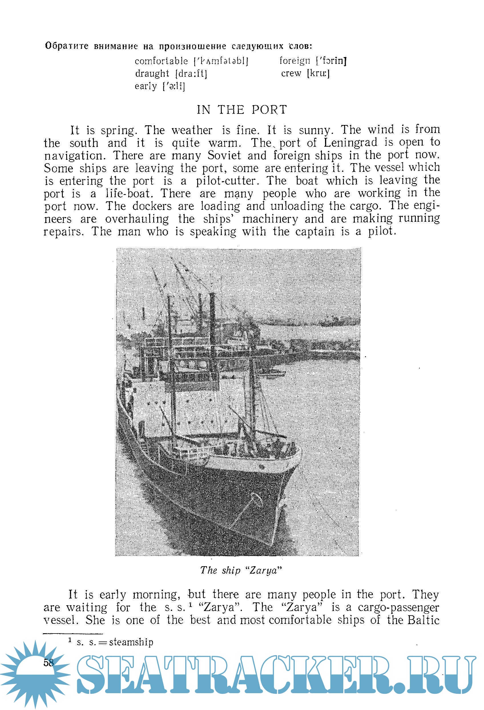 Перед курсантами морских училищ наряду с задачей овладения чтением и переводом английской литературы стоит также задача овладения навыками устной речи, что вытекает непосредственно из специфики работы на морском флоте. Плавание в иностранных водах и необходимость общения с представителями портовых, таможенных и других властей зарубежных стран требует от работника морского флота широкого и ответственного использования английского языка.