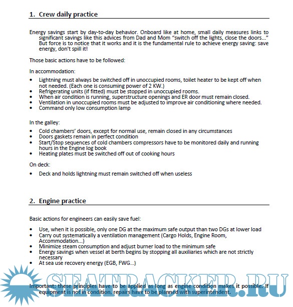 Description: The aim of these good practices is to optimize the fuel and energy consumption regarding Engine Department daily use.