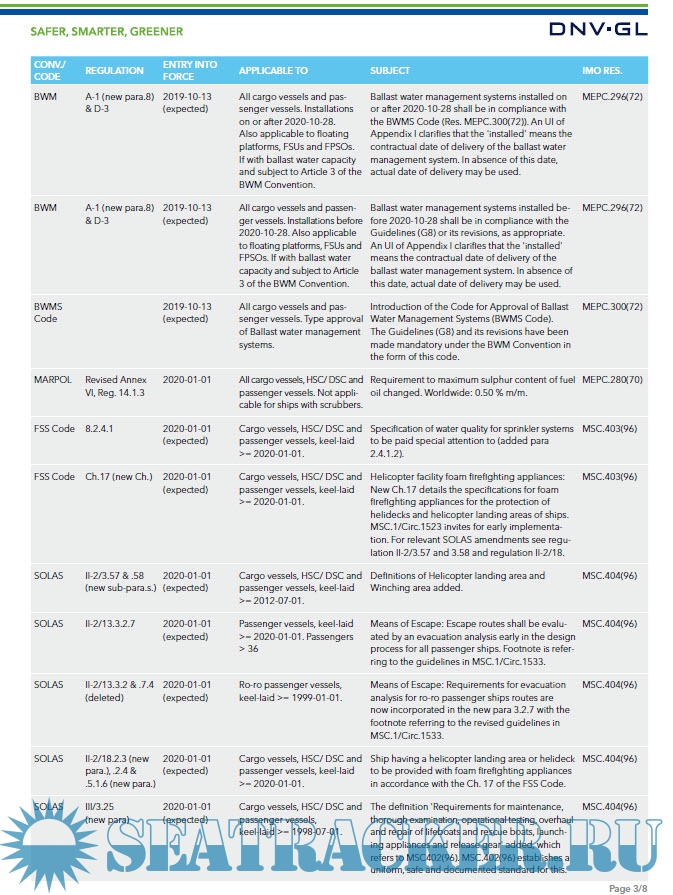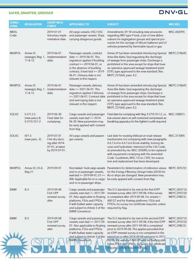 Year: 2019 Language: english Author: DNV-GL Genre: Practical guide Format: PDF Quality: Unknown Pages count: 8 Description: The table provides you with a convenient overview by listing the following columns: Conv./Code, Regulation, Entry into force, Applicable to, Subject as well as IMO Resolution. Additional info: The paper summarizes the most important IMO requirements entering into force from 1 July 2018 up to and including 31 May 2020.