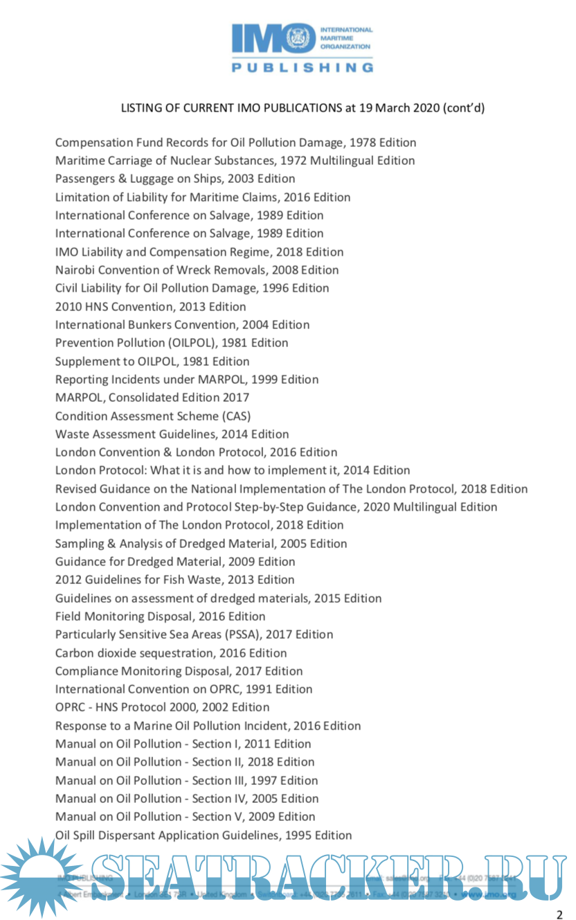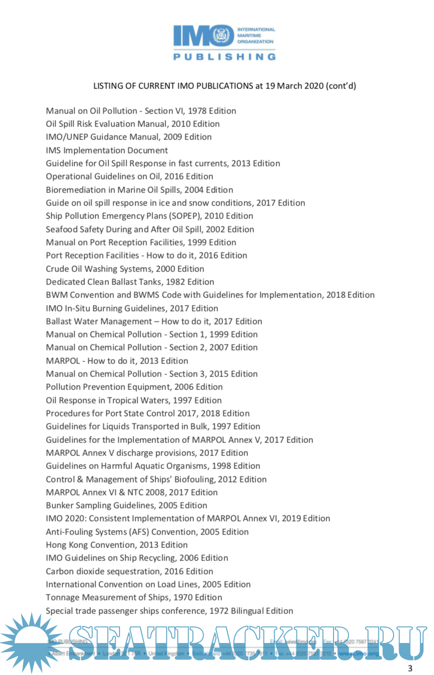 Listing of current IMO publications at 19 march 2020