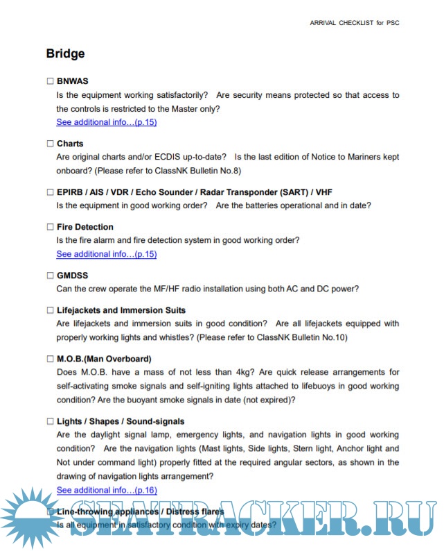 Class NK arrrival checklist for PSC