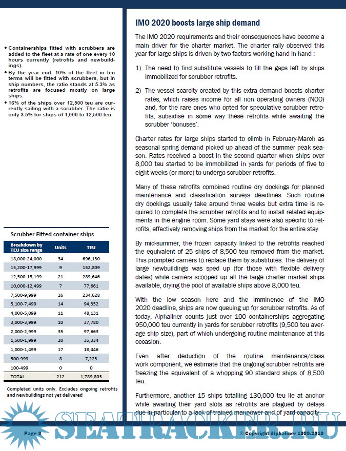 Year: 2019 Language: english Author: Alphaliner Genre: Periodical (magazine) Format: PDF Quality: eBook Pages count: 15 Description: Alphaliner weekly newsletter is tailor-made for use by liner shipping executives, shipbrokers and other shipping professionals. The vast majority of liner operators and container ship owners as well as leading shipbrokers use it daily. Alphaliner is also the first-choice knowledge base used by many port authorities, terminal operators, logistics companies, shippers, research companies and banks and other financial institutions.