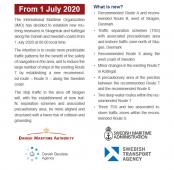 Description: The International Maritime Organization (IMO) has decided to establish new routeing measures in Skagerrak and Kattegat along the Danish and Swedish coasts from 1 July 2020 at 00:00 local time. The intention is to create more predictable traffic patterns for the benefit of the safety of navigation in the area, and to reduce the large number of ships in the existing Route T by establishing a new recommended route – Route S – along the Swedish coast.