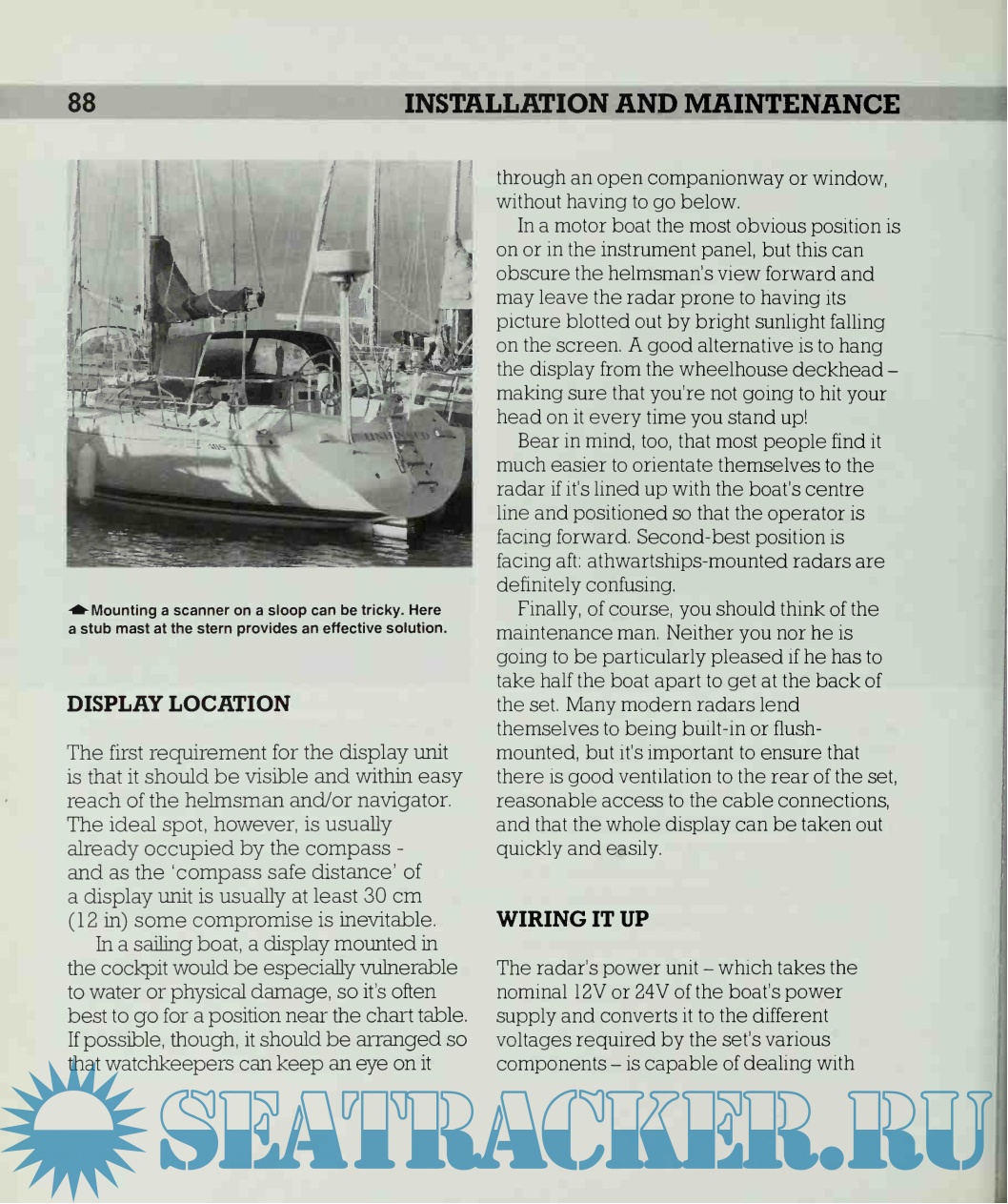 Description: Radar is the ultimate in electronic navigation aids. Other equipment may help you find your way across open water, but only radar will see you safely through a thick fog, showing you the ships that may run you down, the rocks that you are trying to avoid, or the buoys that mark the channel to your berth.