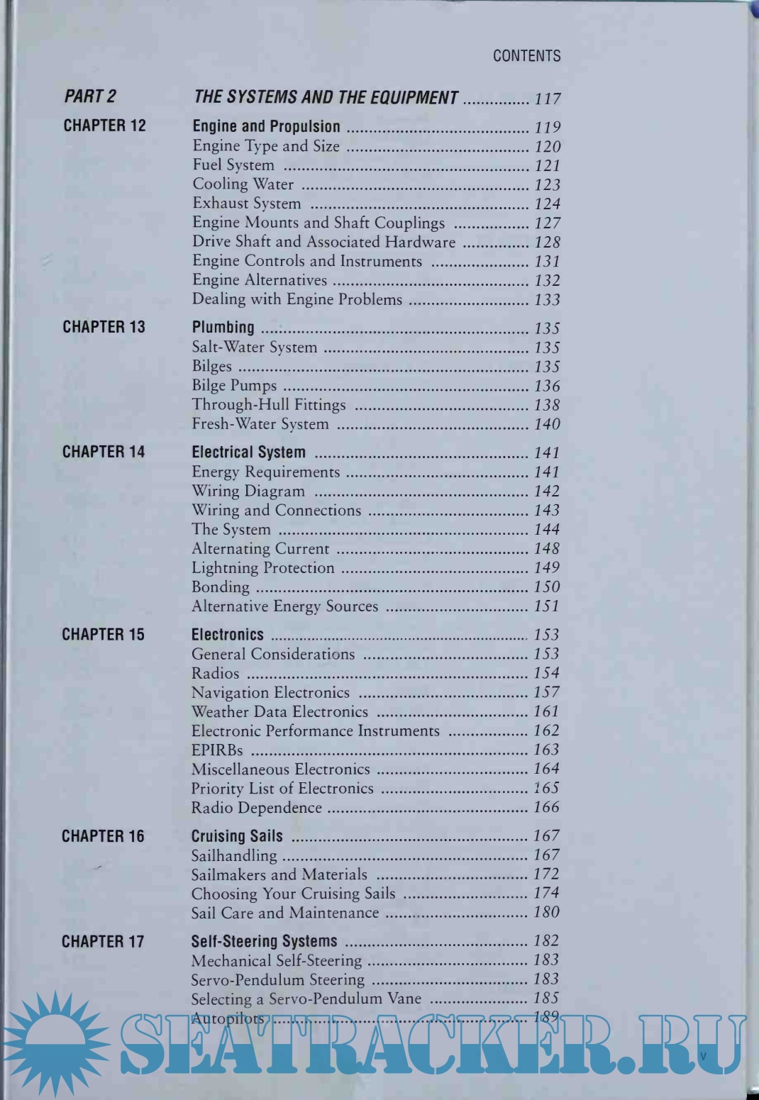 Part 2, Systems and Equipment, covers the engine, electrical systems and the latest electronics, plumbing, self-steering systems as well as cruising sails and magnetic steering compasses.