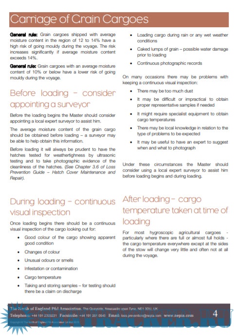 Cargo Care Checklist: Grain - The North of England P&I Association Limited [2020, PDF]