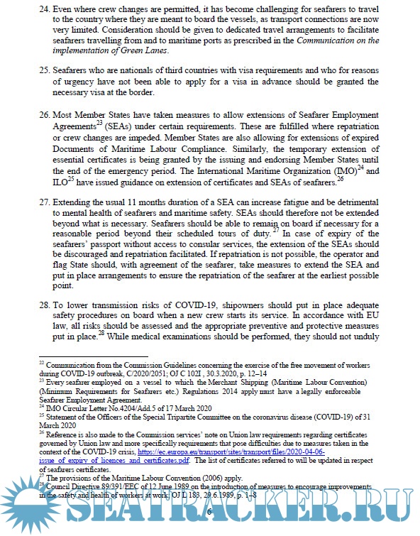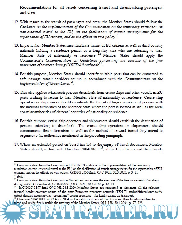 Description: The COVID-19 pandemic has far-reaching effects on maritime transport and persons on board ships. The Guidelines for border management measures to protect health and ensure the availability of goods and essential services1 state that Member States should facilitate the transit of EU citizens and third-country nationals who are EU residents for their return home. Workers in essential functions, regardless of their nationality, should be able to transit and travel to ensure continued professional activity.