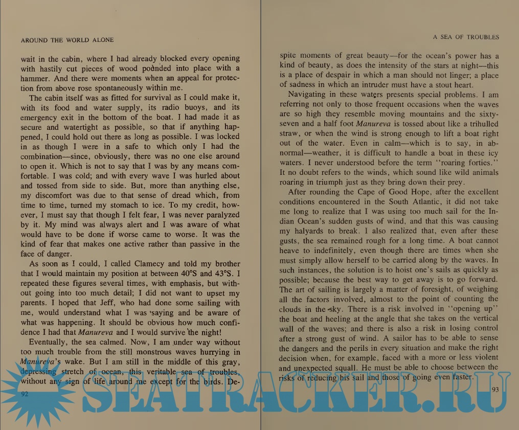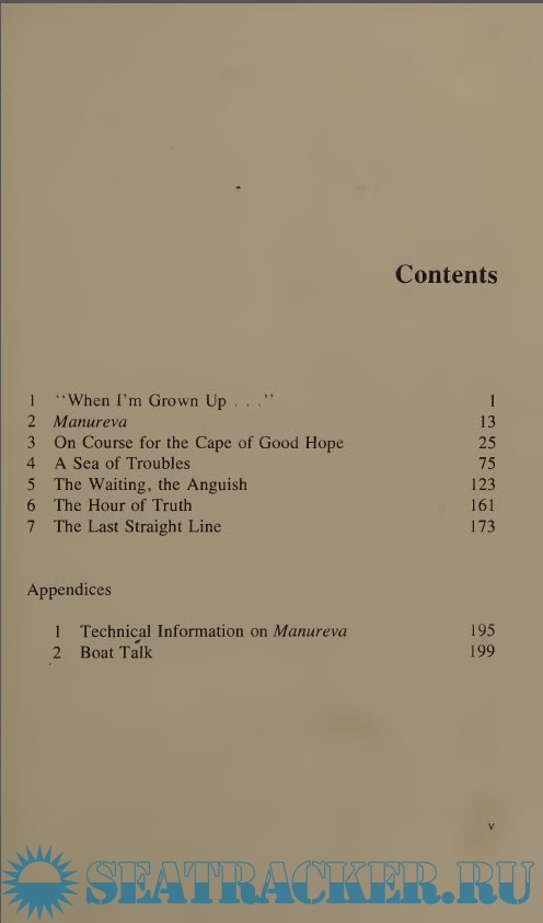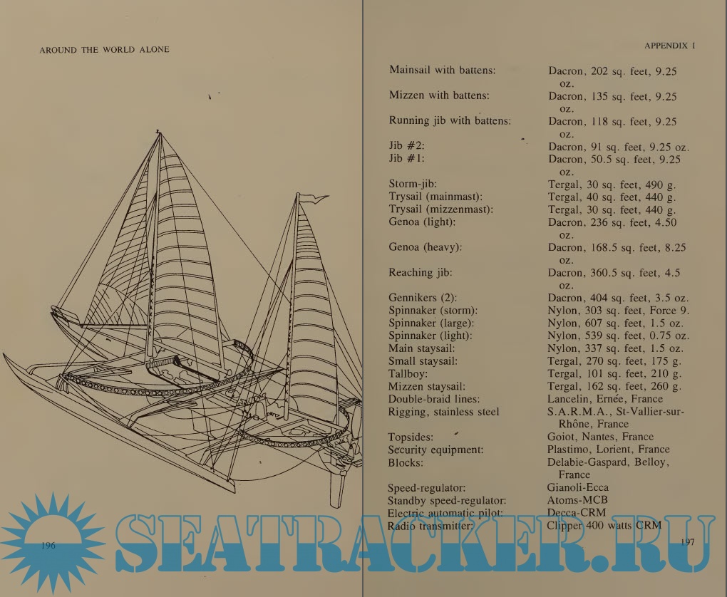Description: Pick up your sense of adventure as an armchair solo sailor and fantasize about what it would be like to sail solo around the world in a 70-ft trimaran. Are you having trouble imagining what is involved? Read just this book and Alain Colas will fill in the details.