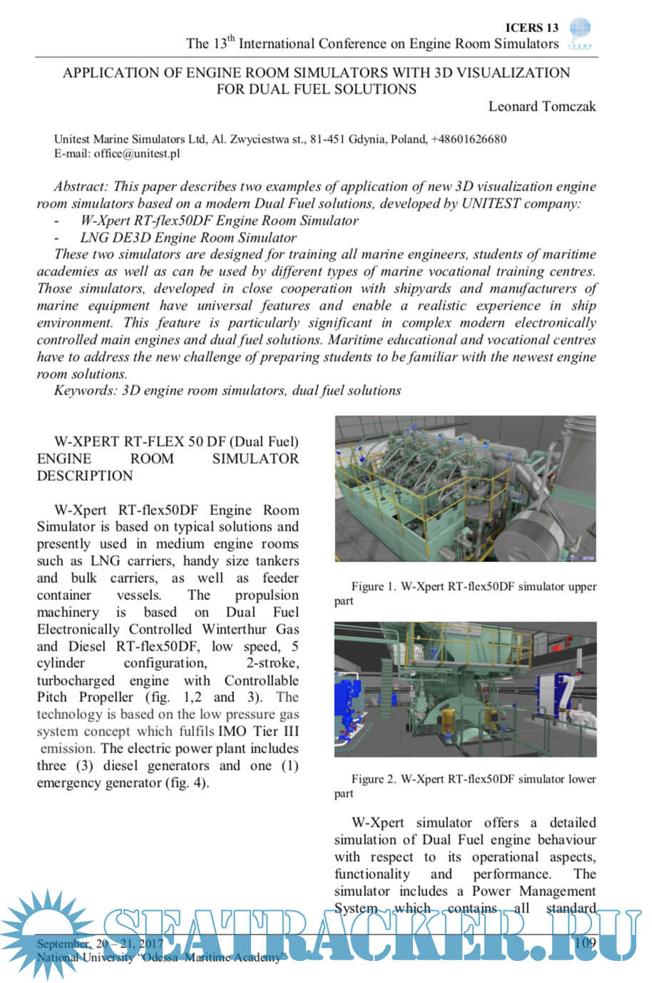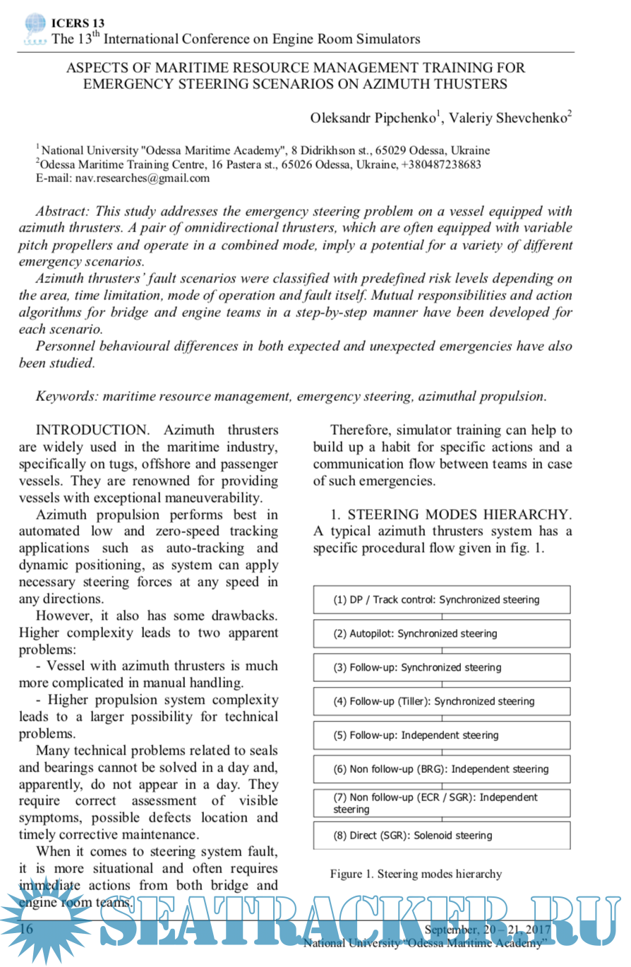Description: Holding of ICERS13 provides a unique opportunity to exchange experience among professionals involved in production and operation of marine engines, mechanisms and systems, creation and use of engine room simulators in marine engineers training.