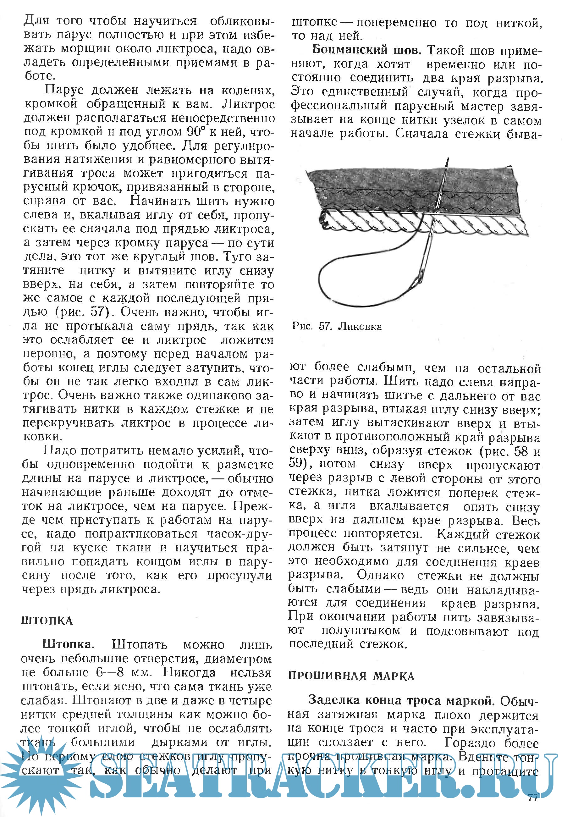Год выпуска: 1980 Язык: русский Автор: Ховард-Уильямс Дж. Жанр: Руководство Издательство: Физкультура и спорт Формат: DjVu Качество: Отсканированные страницы Количество страниц: 93 Описание: Знаете ли вы, как ухаживать за парусами, как перекроить и подогнать их, как починить? Загляните в книгу известного английского специалиста по парусному спорту, она поможет решить вам все эти проблемы. И даже если многое из того, что пишет автор, известно вам, вы все же найдете для себя полезное и поучительное. Книга эта - своеобразный справочник яхтсмена и адресуется яхтсменам различной квалификации.