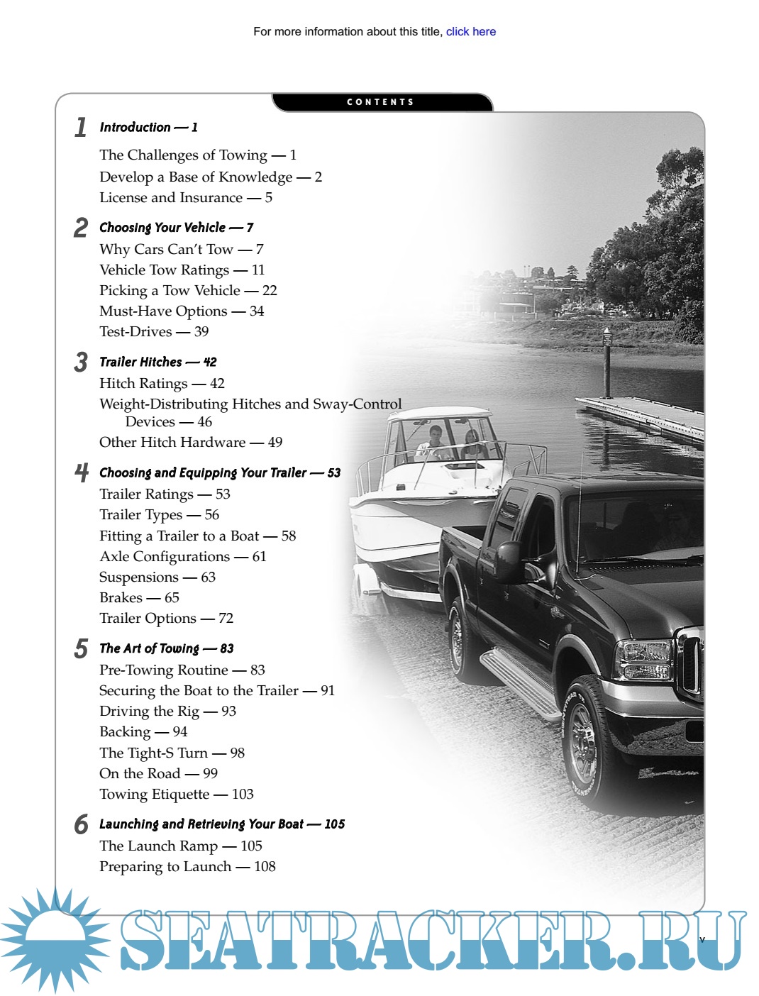 Description: Master the most difficult part of boating before hitting the water This comprehensive guide will help you gain confidence, develop skills, and avoid boat-ramp and highway mishaps when trailering your boat. The book includes easy-to-follow, heavily illustrated instructions on driving, backing, launching, retrieving, and tying down your boat; trailer maintenance; and selecting tow vehicles, hitches, trailers, and towing accessories.