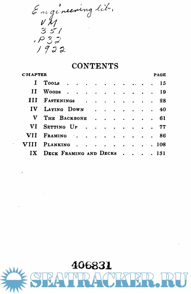 Year: 1922 Language: english Author: Patterson H.W. Genre: Manual Publisher: Macmillan Co Format: PDF Quality: Scanned pages Pages count: 168 Description: A practical course in wooden boat and ship building, the fundamental principles and practical methods described in detail, especially written for carpenters and other.