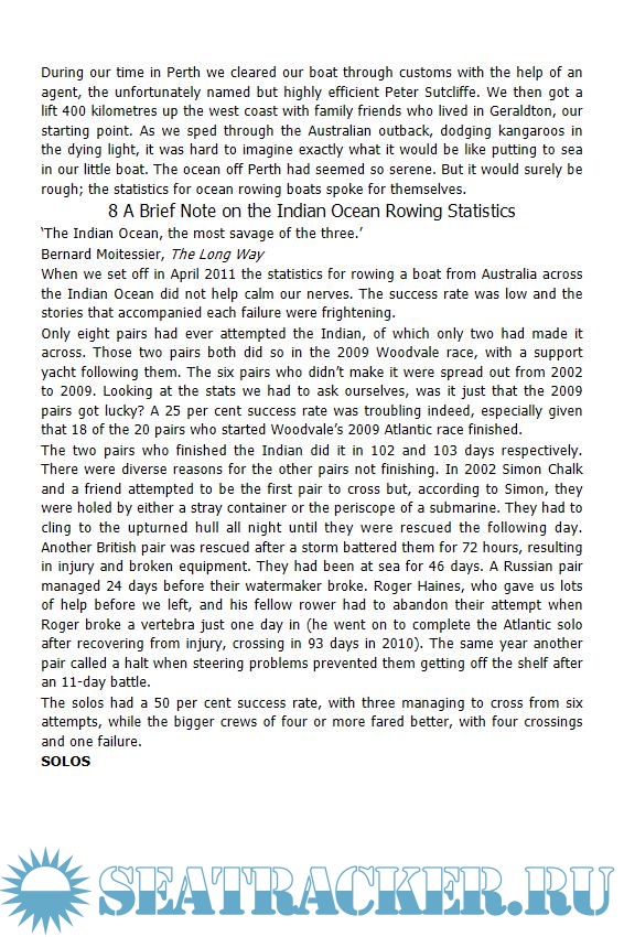 Description: Always do sober what you said you'd do drunk. That will teach you to keep your mouth shut' - Ernest Hemingway Over a boozy Sunday lunch, flatmates James Adair and Ben Stenning made a promise to row across the ocean. At first they considered the Pacific, then the Atlantic, but once James Cracknell and Ben Fogle completed the high-profile Atlantic Rowing Race, their thoughts turned to the Indian Ocean, longer and tougher than the Atlantic and having seen fewer people row across its waters than have walked on the Moon. After years of planning and fund raising, they are ready to launch in Spring 2011. Neither James nor Ben had any rowing or sailing experience. To add to this, James had contracted Guillain-Barre syndrome at the age of 14, which had locked his body into total paralysis for three months (while his mind had remained completely active) and which had left him with paralysed feet. This was a challenge that neither man should have ever considered.