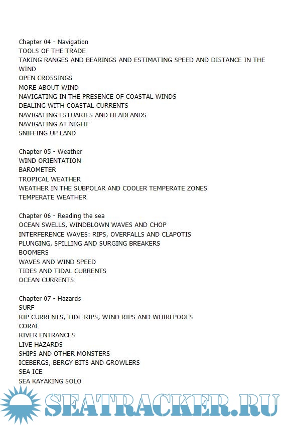 Year: 2009 Language: english Author: Dowd J. Genre: Manual Publisher: Greystone Books ISBN: 1550549766 Format: EPUB Quality: eBook Pages count: 272 Description: This classic guide focuses on the fundamentals of seamanship that are essential knowledge to all ocean paddlers. Sea kayaking has come a long way since this informative manual was published more than twenty years ago. From an offbeat pastime enjoyed by an adventurous few, the sport has become an industry unto itself. Veteran paddler John Dowd’s readable, well-illustrated guide still stands as "the bible" for both new and experienced kayakers. Sea Kayaking covers the basics of equipment and technique, including types of paddles and strokes. But the key focus in this revised and updated edition is on sound seamanship and good risk management: how to read the weather and the water, how to navigate, how to travel with a group. Drawing on his long experience paddling in all climates, Dowd presents practical, concrete advice on dealing with potential hazards (from surf to sea ice to sharks) and carrying out rescues. The book contains new photographs and numerous helpful charts, diagrams and illustrations. It also covers expedition planning, instructional methods and sea kayaking for people with disabilities. As more and more paddlers take to the water, this classic guide continues to be required reading for those seeking adventure on the open ocean.