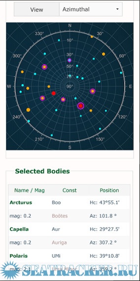 The Celestial Calculator determines the geocentric and topocentric coordinates of any celestial body for a given date and position. Consult our help page for a complete description of input fields and output symbols. In this calculator we also show a PXZ plot, where you can choose Pole Up or Zenith Up orientation. All this to give you more insight. In the tab Calculation Detail we show all details of the calculations according to different methods: Cosine, Haversine, Versine, ABC. This allows you to check your manual calculations and searches in the Nautical Almanac, helping you to master Astro navigation.