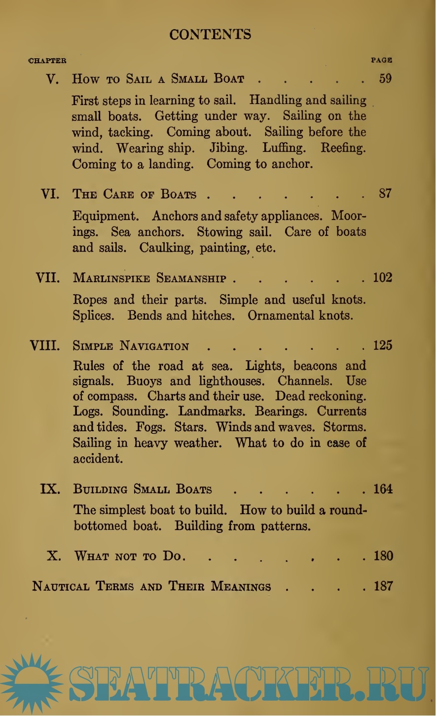 Year: 1916 Language: english Author: A.Hyatt Verrill Genre: Textbook Publisher: D.Appleton and Company Format: PDF Quality: Scanned pages Pages count: 212 Description: No one knows who first invented boats. Probably they were used by primitive man long before he discovered how to use bows and arrows or had even learned to chip stones into simple tools and weapons. But those early boats were not boats as we know them today, for it has taken untold centuries for mankind to improve and develop boats to their present state of perfection. It was a natural and easy matter for a savage to straddle a floating log and, thus supported, cross some pond or stream, and when some member of the tribe discovered that two logs lashed together were more comfortable and less likely to roll over and dump their passengers into the water than a single log, he no doubt felt as if he had made a marvelous invention and was probably looked upon as a prehistoric Fulton by his fellowmen. Later on some man found that a hollowed log was more buoyant and stable than an ordinary tree trunk and from this crude beginning rude dugout canoes were developed. Even today many races have never progressed beyond the hollowed-log state of boatbuilding and dugouts, forty or fifty feet in length and capable of carrying great weights, are in daily use in many lands. Some of these are very crude, heavy craft, while others are beautifully made, are light in weight and are very speedy and seaworthy.