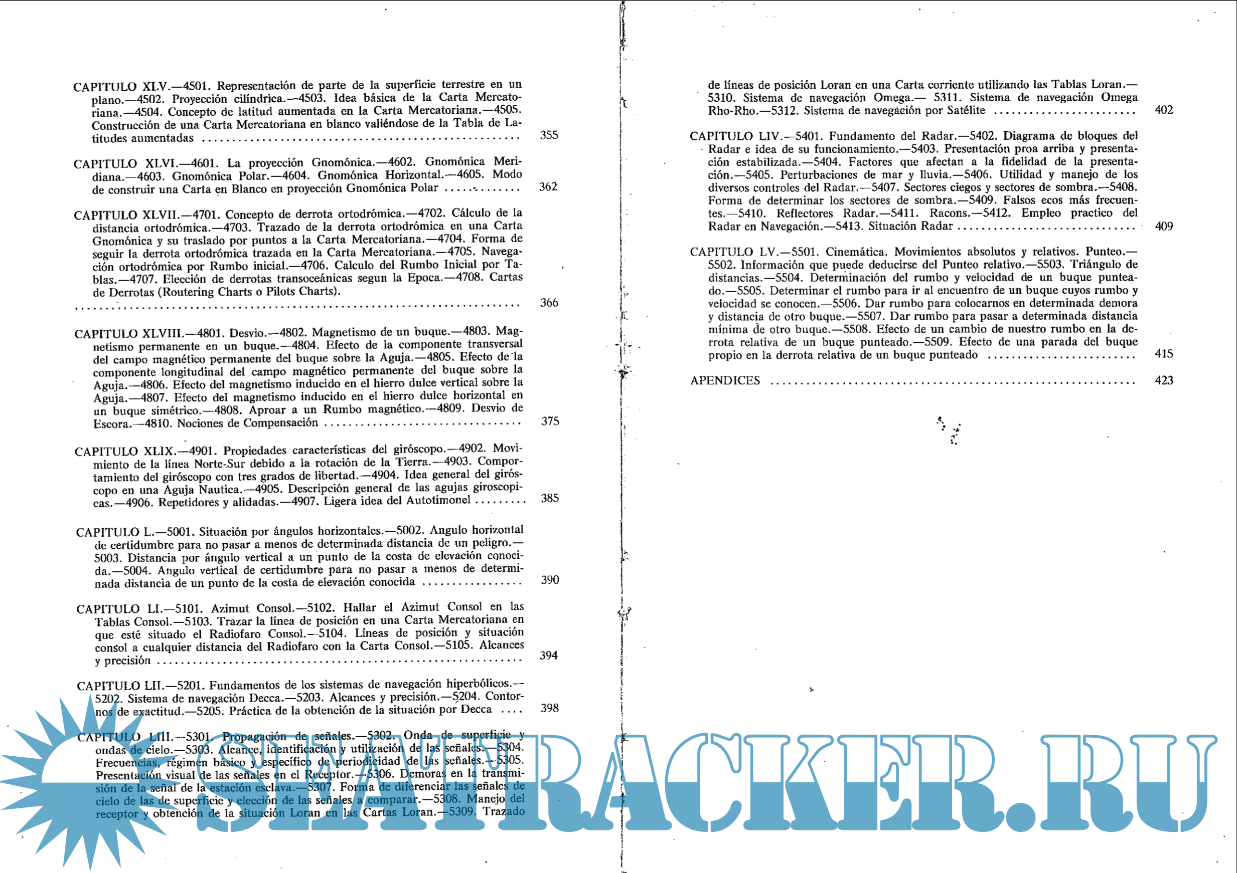 Year: 1982 Language: spanish Author: Moreu Curbera, José María Genre: Textbook Publisher: Librería San José Edition: 6th ISBN: 8440065167 Format: PDF Quality: Scanned pages Pages count: 476 Description: Libro de texto para Patrón de 1ª clase de Pesca de Litoral, Patrón de Cabotaje, Patrón de Yate, Patrón de Pesca de Altura, Patrón Mayor de Cabotaje y Capitán de Yate. La resolución de problemas se realiza por logaritmos, tablas y utilizando la sencilla calculadora de una memoria con la que se obtienen directamente las soluciones. Textbook for Fishing Coastal Skipper, Coastal Skipper, Yatch Skipper, Fishing High Seas Unlimited, High Seas Skipper and Yatch Captain. Problem solving is done by logarithms, tables and using the one memory simple calculator with which solutions are obtained directly.