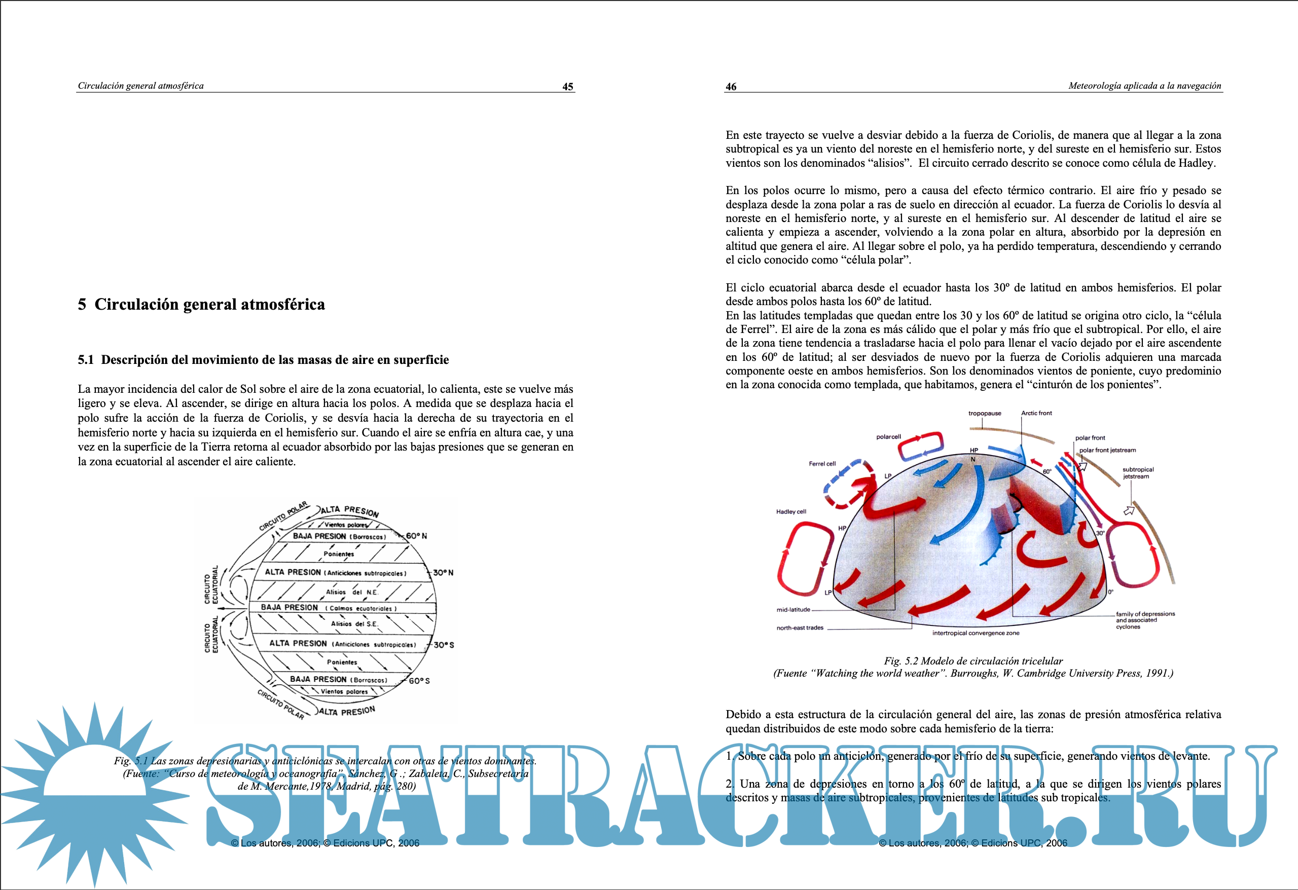 Year: 2006 Language: spanish Author: Martínez de Osés, Francesc Xavier Genre: Manual Publisher: Edicions UPC Edition: 2nd ISBN: 9788498802269 Format: PDF Quality: eBook Pages count: 220 Description: El presente libro pretende ser fundamentalmente una herramienta de trabajo para los alumnos de la Licenciatura en Náutica y los más avezados de la Diplomatura en Náutica y Transporte Marítimo de las facultades y escuelas superiores de la Marina Civil de habla hispana. La obra se inicia con un breve repaso al capítulo energético que provee de energía a la atmósfera y que constituye la base combustible de la maquinaria meteorológica. Posteriormente se repasan someramente los criterios de estabilidad del aire, que justifican la formación de centros de presión y la formación de nubes. Tras sentar estas bases, se presenta la circulación general atmosférica y sus consecuencias, así como el papel del viento como igualador de los desequilibrios atmosféricos. Al tratarse de una obra dirigida a los estudiantes de náutica, se relaciona el viento con la formación de las olas. Se distinguen los conceptos de meteorología y climatología, y se analiza el instrumental utilizado en la observación meteorológica. A continuación se aborda la cuestión de la observación y la predicción, que quizás sea la parte que el observador a bordo más necesitaba ver compendiada y que tenía que consultar en otras publicaciones quizá de más rigor científico, pero dirigidas a otro público. Finalmente, se introducen los sistemas usuales de consulta del tiempo por parte del marino, y la obra concluye con un ejemplo de interpretación del parte del tiempo. This book is intended primarily to be a working tool for students of Nautical studies and the most advanced students of Nautical and Maritime Transport of the colleges and colleges of the Spanish-speaking Civil Navy. The work begins with a brief review of the energy chapter that provides energy to the atmosphere and is the fuel base of the meteorology machinery. The criteria for the stability of the air, which justify the formation of pressure centres and the formation of clouds, are subsequently re-examined. After laying these foundations, the general air circulation and its consequences, as well as the role of the wind as equalizer of atmospheric imbalances, are presented. As it is a work for the nautical students, the wind is linked to the formation of the waves. The concepts of meteorology and climatology are distinguished, and the instrumentation used in the meteorology observation is analyzed. The question of observation and prediction is addressed, which may be the part that the observer on board most needed to see compendiated and that he had to consult in other publications perhaps more scientific, but directed to another audience. Finally, the seafarer's usual time-reference systems are introduced, and the work concludes with an example of interpretation of the part of time.