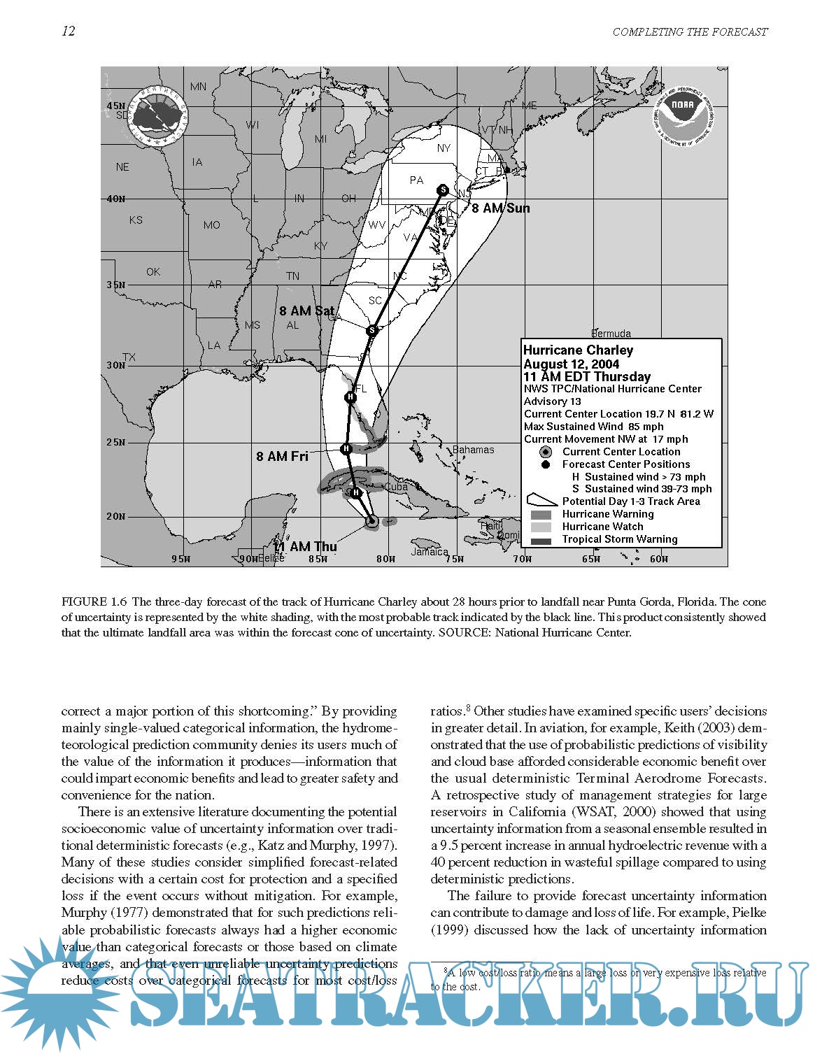 Description: Uncertainty is a fundamental characteristic of weather, seasonal climate, and hydrological prediction, and no forecast is complete without a description of its uncertainty. Effective communication of uncertainty helps people better understand the likelihood of a particular event and improves their ability to make decisions based on the forecast. Nonetheless, for decades, users of these forecasts have been conditioned to receive incomplete information about uncertainty. They have become used to single-valued (deterministic) forecasts (e.g., "the high temperature will be 70 degrees Farenheit 9 days from now") and applied their own experience in determining how much confidence to place in the forecast. Most forecast products from the public and private sectors, including those from the National Oceanographic and Atmospheric Administration’s National Weather Service, continue this deterministic legacy. Fortunately, the National Weather Service and others in the prediction community have recognized the need to view uncertainty as a fundamental part of forecasts. By partnering with other segments of the community to understand user needs, generate relevant and rich informational products, and utilize effective communication vehicles, the National Weather Service can take a leading role in the transition to widespread, effective incorporation of uncertainty information into predictions. "Completing the Forecast" makes recommendations to the National Weather Service and the broader prediction community on how to make this transition.