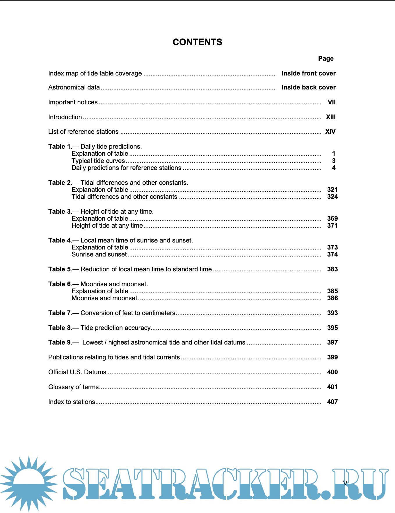Description: Contains full daily predictions for 76 reference ports and differences and other constants for about 2,600 stations in North America, South America, and Greenland. It also contains a table for obtaining the approximate height of the tide at any time, a table of local mean time of sunrise and sunset for every 5th day of the year for different latitudes, a table for the reduction of local mean time to standard time, a table of moonrise and moonset for 8 places, a table of the Greenwich mean time of the Moonsí phases, apogee, perigee, greatest north and south and zero declination, and the time of the solar equinoxes and solstices, and a glossary of terms. This book comes is published as one part in a set of four volumes, along with Europe and West Coast of Africa (including the Mediterranean Sea)