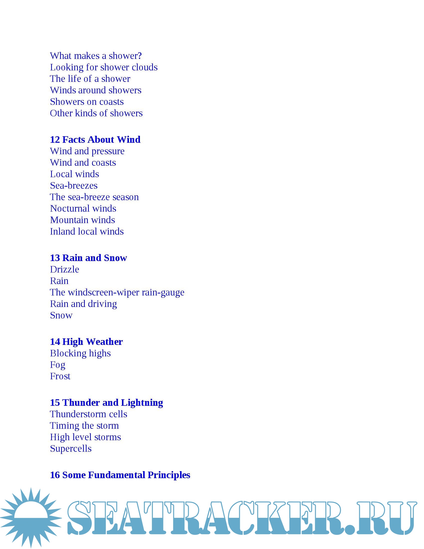 Year: 2014 Language: english Author: Alan Watts Genre: Handbook Publisher: Adlard Coles Nautical Edition: 3rd. ISBN: 978-1-4729-1389-0 Format: PDF Quality: eBook Pages count: 191 Description: The Weather Handbook is the essential guide to how the weather is formed, providing readers with the ability to look at the sky and interpret its signs, and combine this knowledge with information provided by professional forecasts to assess for themselves what the coming weather is likely to be. This handbook has been the standard reference for almost 20 years for students on Day Skipper and Yachtmaster courses, and the handbook of choice for skippers and crew of cruising and racing yachts. It has now been completely redesigned for the third edition to be more user friendly, with new photos and updated explanatory text. The book also addresses new sources of weather information that have exploded on to the market. There are countless websites and apps providing forecast data, and The Weather Handbook guides users in how to use and interpret this information for themselves.