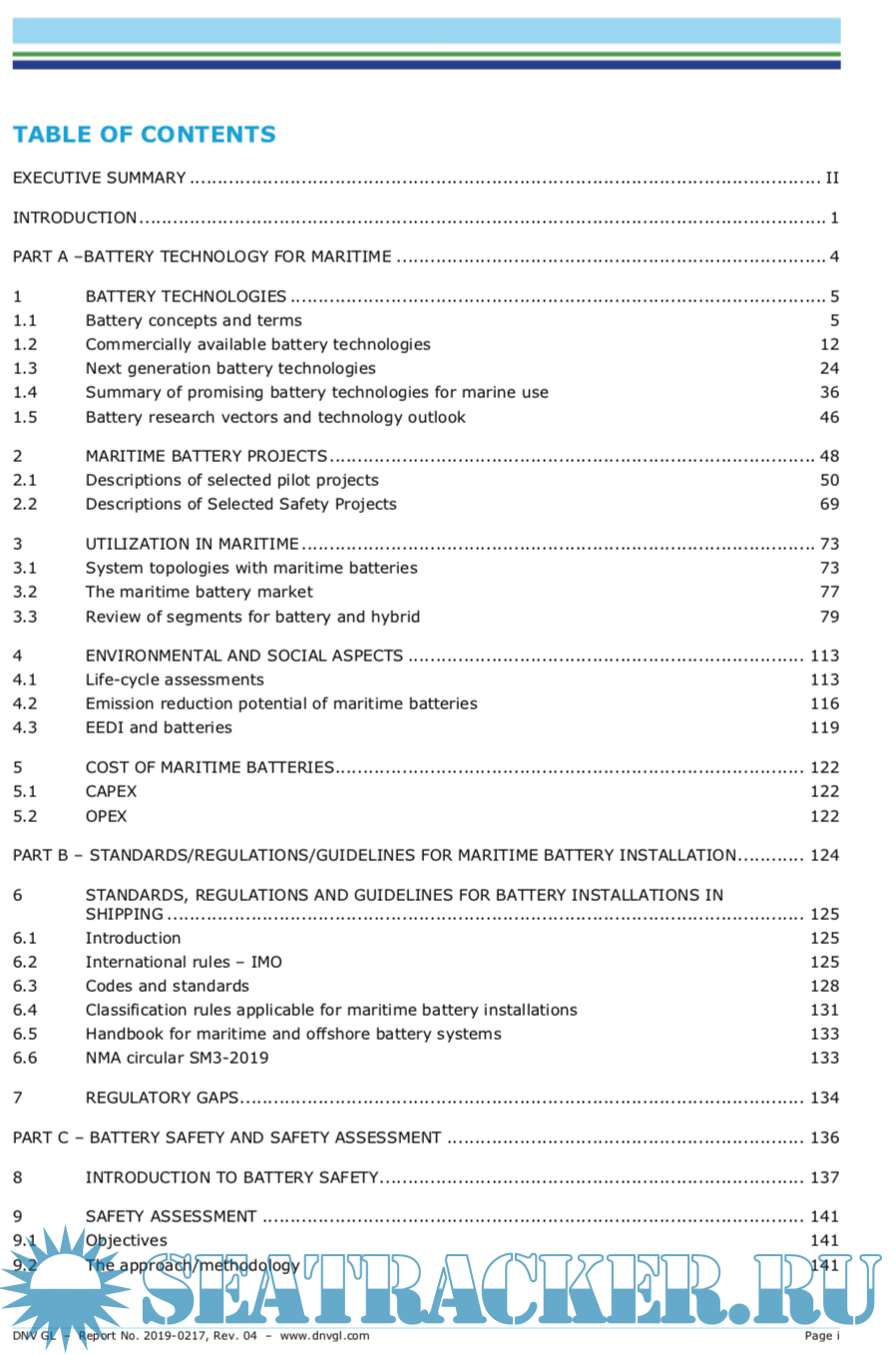 The present report provides a technical study on the use of Batteries in shipping that, being supported by a technology overview and risk-based analysis, will evaluate their potential and constraints as prime movers and energy sources in shipping. In addition, the study shall provide a detailed description of the current applicable standards, as well as the existing and potentially on-going regulatory development for Batteries, at both national and international level. From the evaluation of the current regulatory and standardization context a gap analysis shall be performed, with the objective of identifying regulatory, harmonization and relevant knowledge gaps. The proposed study shall, in particular, be able to link with the previous EMSA study on the use of Fuel Cells in shipping, identifying the possible routes for viable “all- electric” ships under the adoption of hybrid FC-Battery energy production/storage solutions.