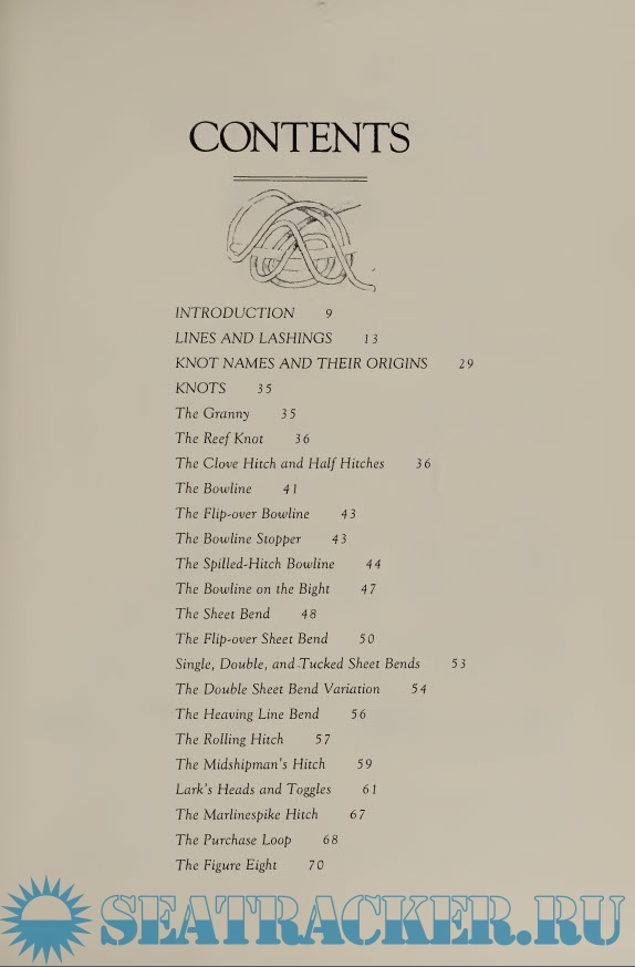 Year: 1990 Language: english Author: Frank Rosenow Genre: Handbook Publisher: W.W. Norton & Company Edition: First ISBN: 0-393-03338-4 Format: PDF Quality: Scanned pages Pages count: 112 Description: Shows how to tie a variety of knots, including the bowline, granny, clove hitch and sheet bend, and explains how each is used aboard ships Here are all the knots any boatman—whether sailor, powerboat owner, fisherman, or merchant seaman—will ever need. Frank Rosenow’s brilliant drawings explain, with a clarity that is art itself, how the knots are tied. He then shows each knot in action with drawings that explain how it is used. The Granny The Reef Knot The Clove Hitch and Half Hitches The Bowline The Flip-Over Bowline The Bowline Stopper The Spilled-Hitch Bowline The Bowline on the Bight The Sheet Bend The Flip-Over Sheet Bend Single, Double, and Tucked Sheet Bends The Double Sheet Bend Variation The Heaving Line Bend The Rolling Hitch The Midshipman’s Hitch Lark's Heads and Toggles The Marlinespike Hitch The Purchase Loop The Figure Eight The True Lover’s Knot The Constrictor Knot The Running Knot The Anchor Bend The Studdingsail Halyard Bend The Timber and Killick Hitches The Studdingsail Tack Bend The Marling Hitch Slipped Knots KNOTS IN SPECIAL MATERIALS