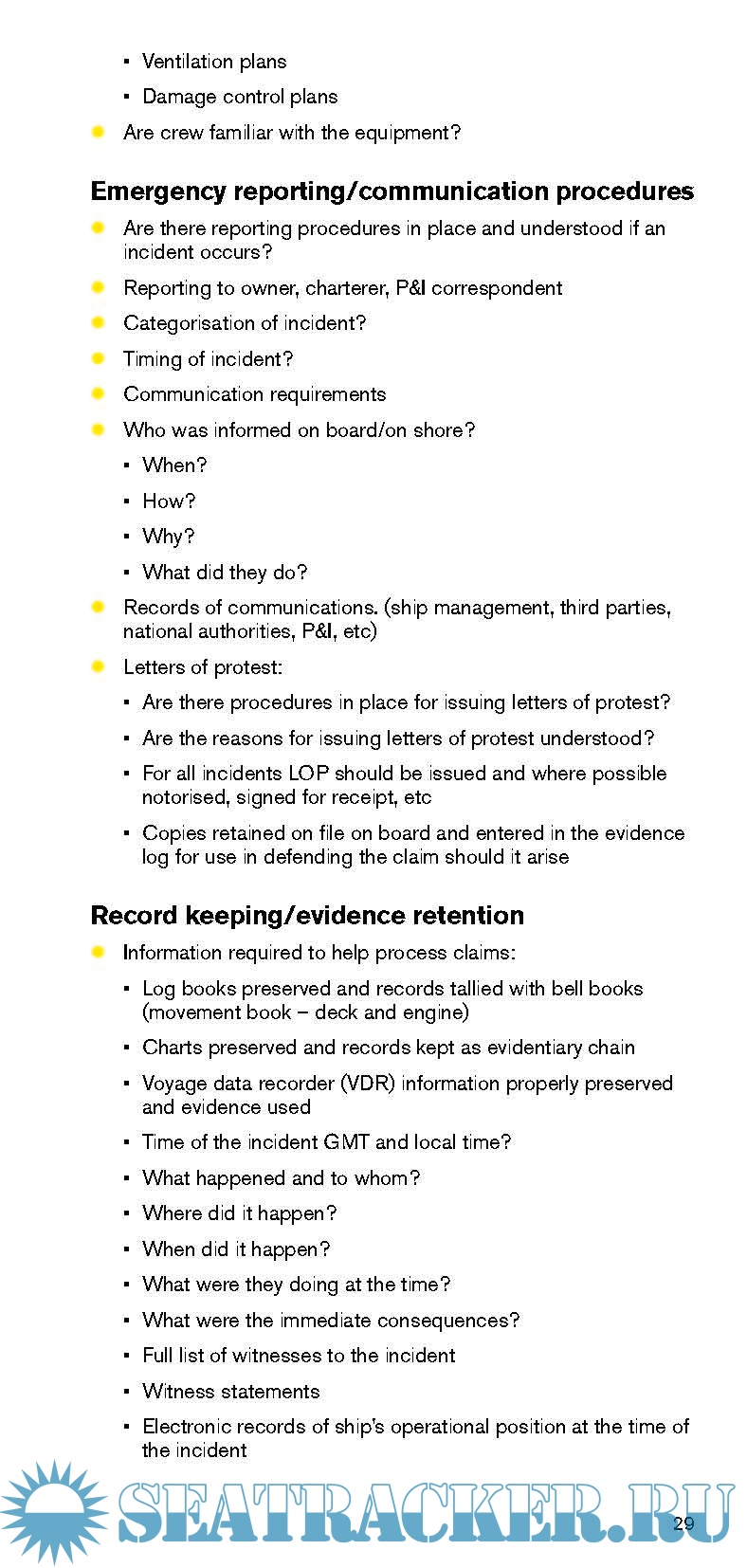 Year: 2017 Language: english Author: Uk P&I Club Format: PDF Quality: eBook Pages count: 36 Description: This booklet is a guide to the Controls and key points that the UK Club’s Risk Assessors look for when inspecting a vessel. It will allow you to carry out a similar check on the Threats and Controls and make sure the vessel has a good risk profile. Each booklet in the Risk Awareness series deals with an area of Risk – Personal injury, collision, pollution, etc – and these are sub-divided into Threats and then Controls. Each Threat is followed by a ‘score’ section where the individual Controls can be graded according to how effective they are: 1 Very good control 2 Good control 3 Average control 4 Poor control 5 Very poor control (maybe non-existent) Furthermore, there is space to make comments on certain Controls; to note ways in which deficient ones could be improved. At the back, there is a section on Consequences, which is also divided into Controls that should be in place to mitigate the cost of any claim, i.e. after the event controls. These too can be graded.