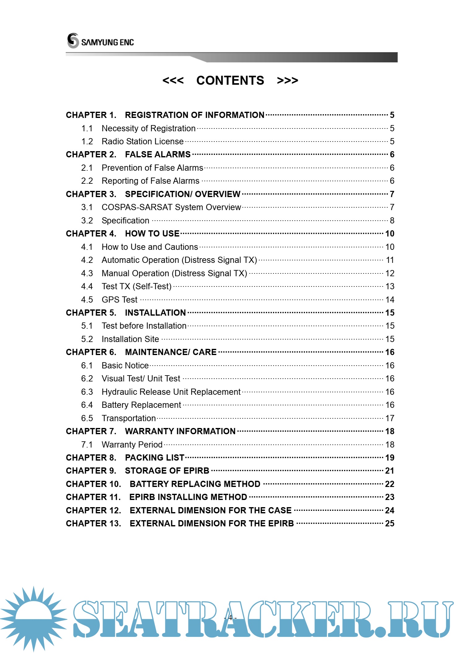 Samyung SEP-500 GPS EPIRB User Manual
