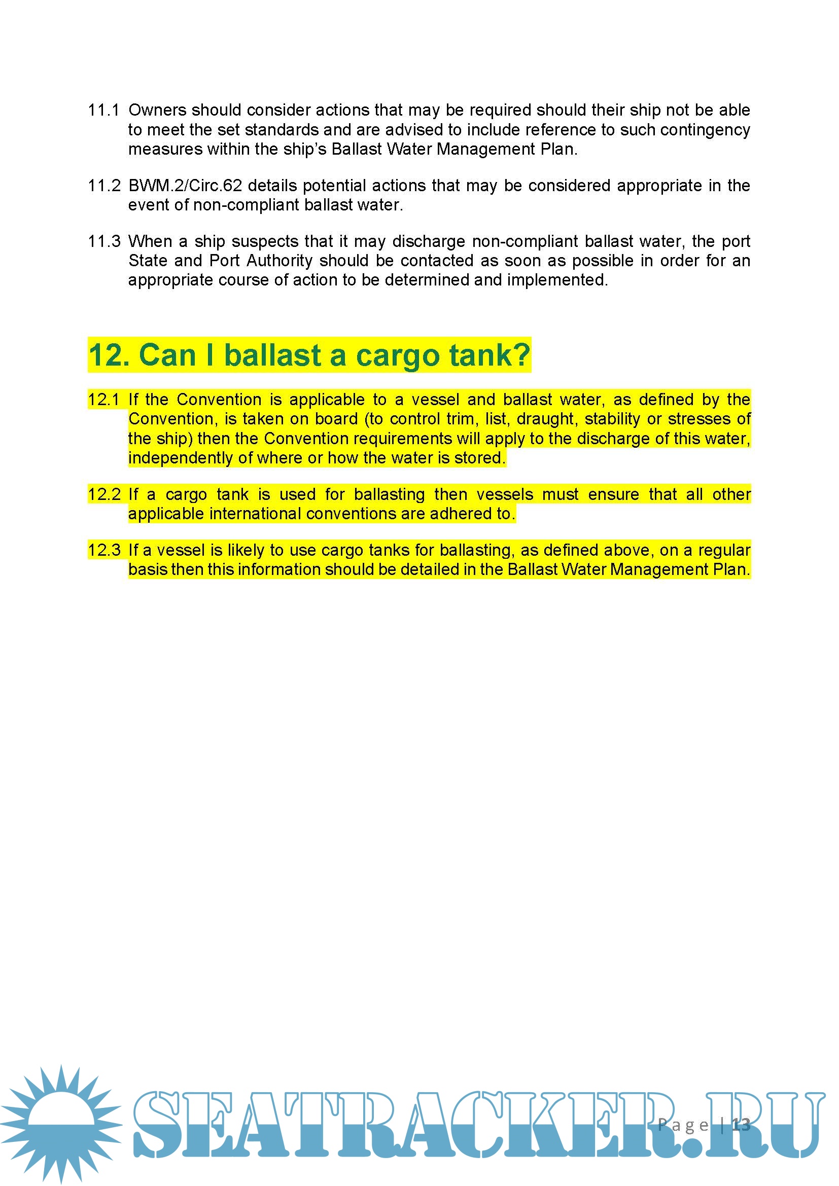 Description: This FAQ has been developed based upon queries received from interested stakeholders. Updates will be made to this document based up on feedback from stakeholders. You are therefore advised to check back on this document periodically. Updates since the last iteration of the Ballast Water FAQ’s have been highlighted in yellow.