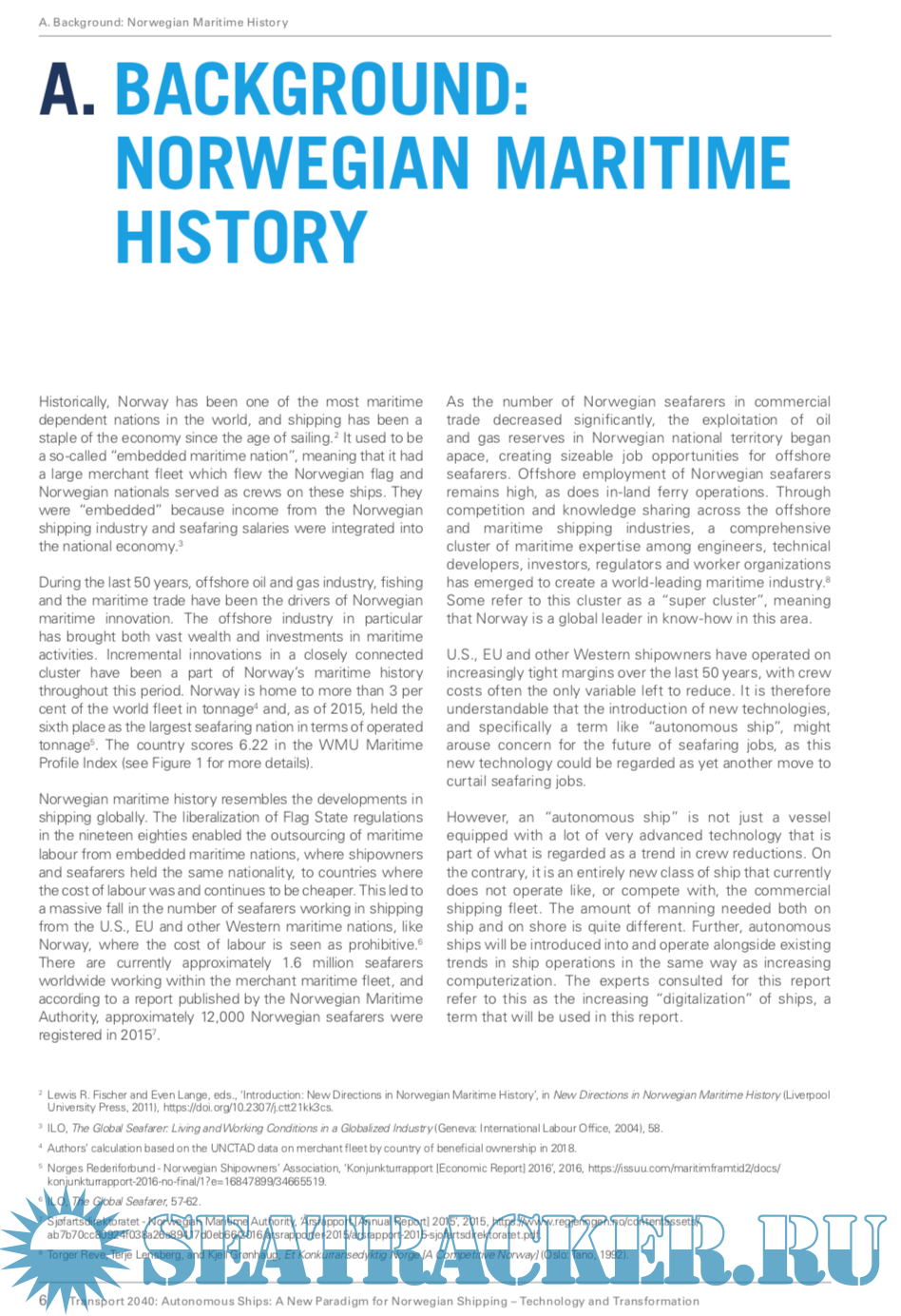 Year: 2020 Language: english Author: WMU/ITF Genre: Guide Publisher: Worl Maritime University ITF Edition: 1 ISBN: 978-91-984865-4-4 Format: PDF Quality: eBook Pages count: 53 Description: As indicated in the Acknowledgment of this report, this research work forms part of the study, entitled Transport 2040: Automation, Technology, Employment – The Future of Work, undertaken by the World Maritime University (WMU) and commissioned by the International Transport Workers’ Federation (ITF). The main section of this study summarizes overall trends and provides a global overview about developments in all four modes of transport. However, as highlighted in its main findings, technology and automation evolves in different ways in different contexts and environments. While in some countries, certain conditions may allow a new technology to find its way to the market, in other countries such a facilitating environment may not exist. Another factor identified is that the mechanisms behind the introduction of technology and automation in transport are complex. By highlighting general trends, as was mainly done in the Transport 2040: Automation, Technology, Employment – The Future of Work report, a number of interesting details are presented that may help the reader acquire a better understanding of the background and the dynamics in introducing technology and automation in transport – trends that are not necessarily discernible. The project team also felt that dedicated Technology and Transformation Reports would provide the reader with an enhanced perspective. The concept behind the format of this report is one that has adopted a unified approach to identify the drivers behind the introduction of a certain application of technology or automation in a specific country, and to discuss this application in the context of Norway. These reports focus on six enabling factors introduced in the Transport 2040: Automation, Technology, Employment – The Future of Work report: