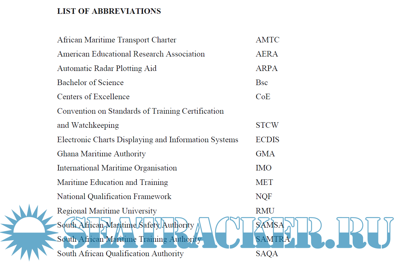 Assessment of quality of training and education of seafarers in South Africa and Ghana