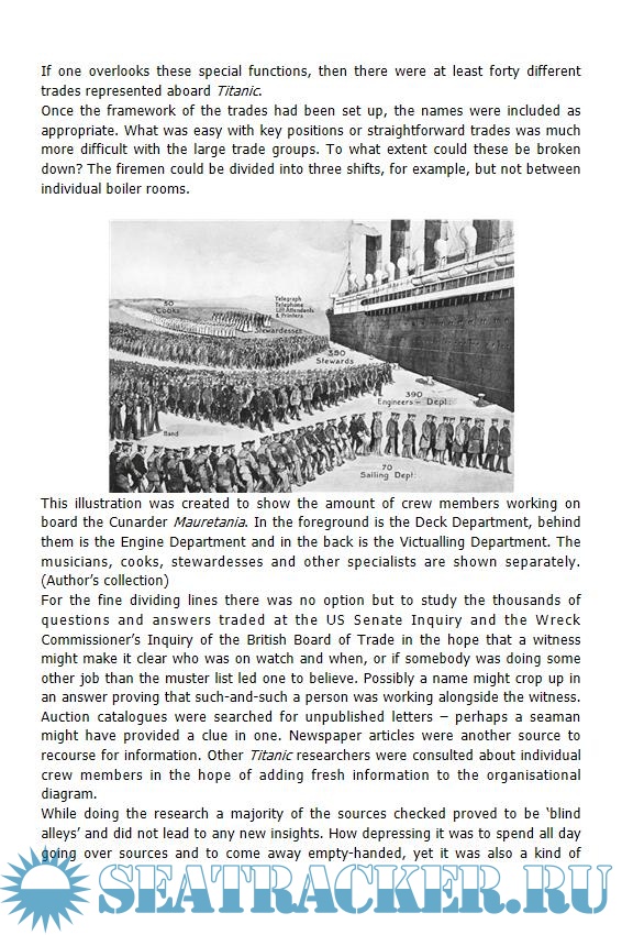 Description: This valuable study provides a much-needed insight into the confusing and complicated world of the crew of Titanic. It examines the jobs on board and what they involved, explaining watch systems and the hierarchy. It solves many mysteries, from night watchmen that do not appear as such in the muster lists, boots stewards who did not shine shoes and information on tips, salaries and hidden bonuses. This important book breathes life into the story of the ship and its crew, of which 76.4% died in the sinking. This work will be of immense value to enthusiasts around the world.