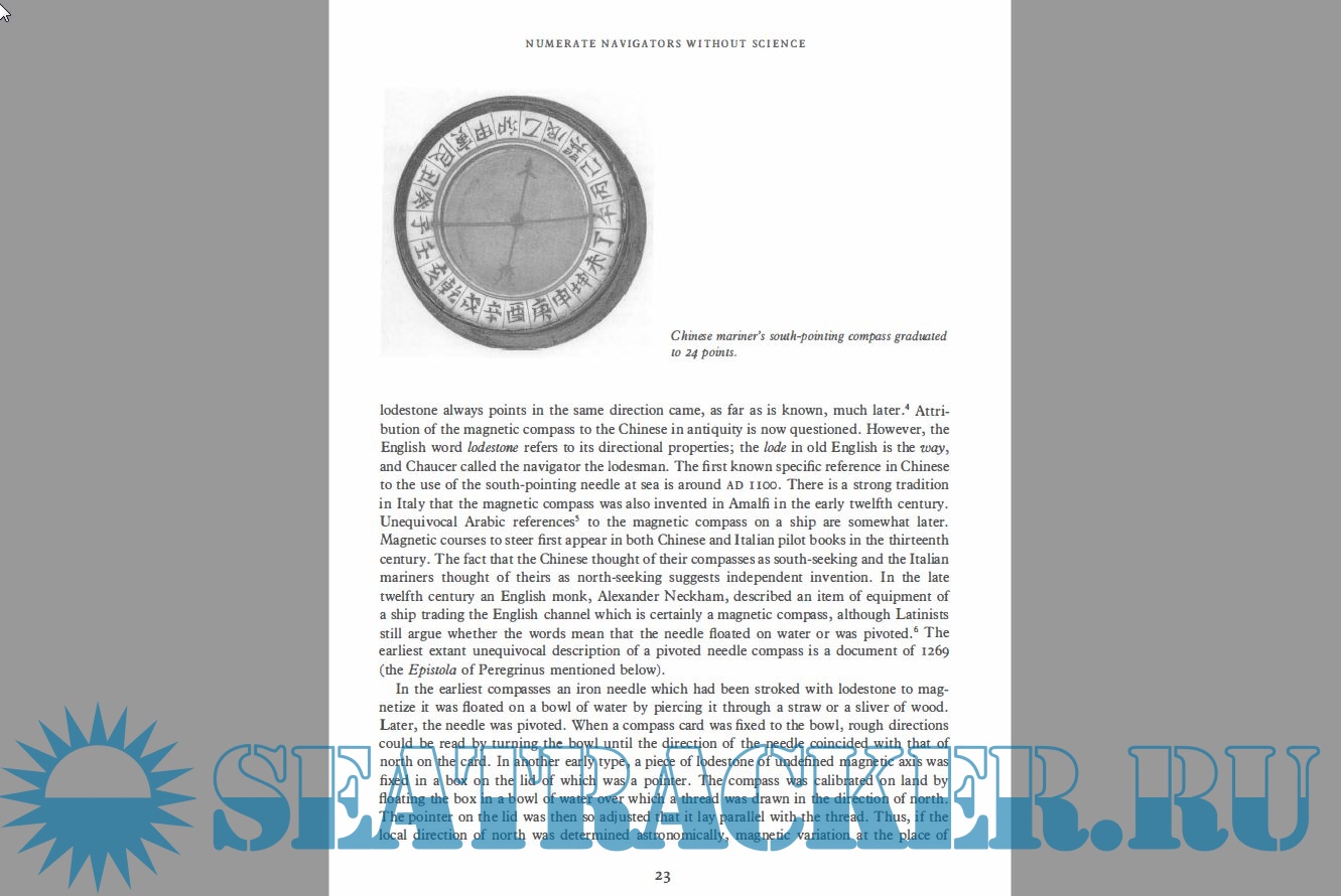 Year: 1994 Language: english Author: J. E. D. Williams Genre: Textbook Publisher: Oxford University Press Edition: 1 ISBN: 9780198563990 Format: PDF Quality: eBook Pages count: 321 Description: Developments in navigational science can be traced from beginnings 23 centuries ago when the Greeks tried to calculate latitude to the present when satellite systems can easily pinpoint positions to within millimetres. The history of navigational science offers vivid insights into the areas of human endeavour which have driven it: the need for discoverers such as Columbus to locate and claim distant lands for their sovereigns and paymasters; the need of merchants in a world of expanding horizons and trade for efficient and reliable shipping; the new an durgent needs of rapidly developing air travel where safety demands accurate and quick navigation in very difficult conditions; the deadly needs of the military in targetting missiles and sailing submarines in radio silence. In servicing these needs navigational science has made use of very diverse scientific discoveries: simple geometry and calculations in dead-reckoning and the use of magnetic compasses; more complicated mathematics and more accurate mechanisms in astronomical navigation; the properties of radio waves in homing and direction-finding systems; the self-contained world of gyros and inertial guidance systems; and most recently the combination of computing power, micro-electronics, and satellites to give the startling millimetre-accuracy of current systems.