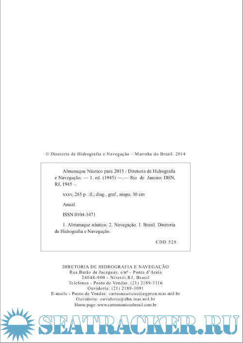 Description: Almanaque Náutico para 2015 (Edition 2014) by Diretoria de Hidrografia e Navegação – Marinha do Brasil - Portuquese - eBook, 330 pages.
